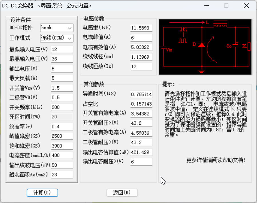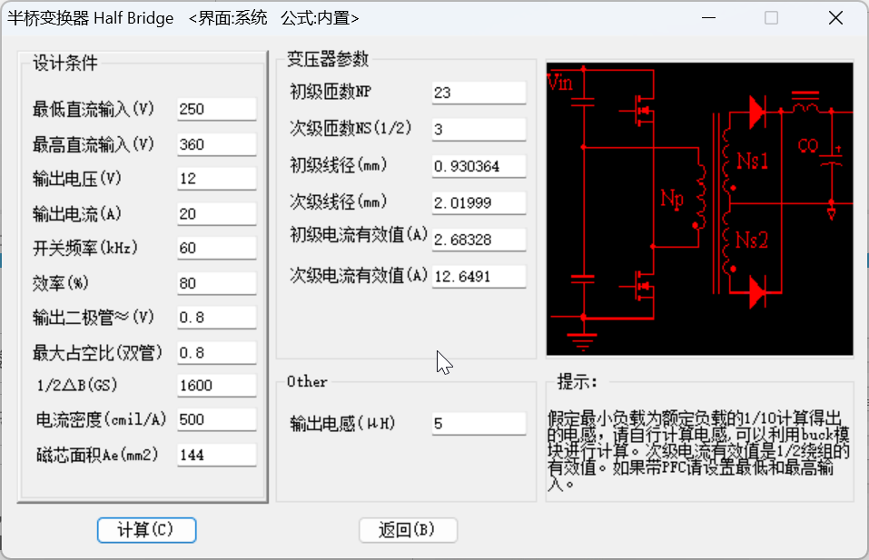 - Chỉ cần nhập các thông số cơ bản (điện áp vào/ra, dòng điện, tần số…), phần mềm sẽ tự động tạo ra các thông số chi tiết (giá trị điện cảm, số vòng dây, đường kính dây, thông số lõi từ…)