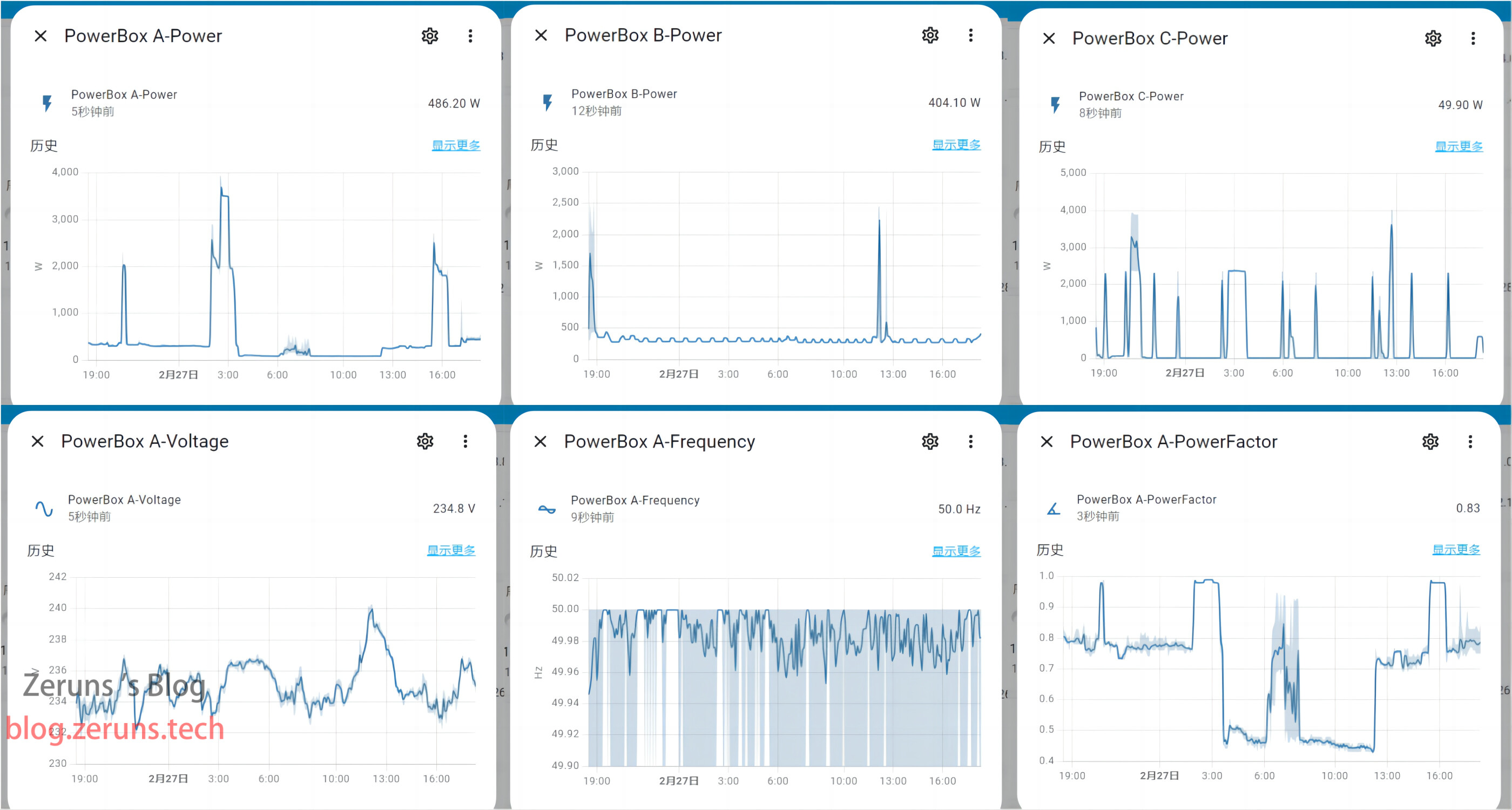 Сделал трёхфазный счётчик электроэнергии, способный измерять ток, напряжение, мощность, коэффициент мощности и потреблённую энергию по трём фазам; данные выгружаются в HomeAssistant — удобно следить за домашним потреблением и мощностью в реальном времени.