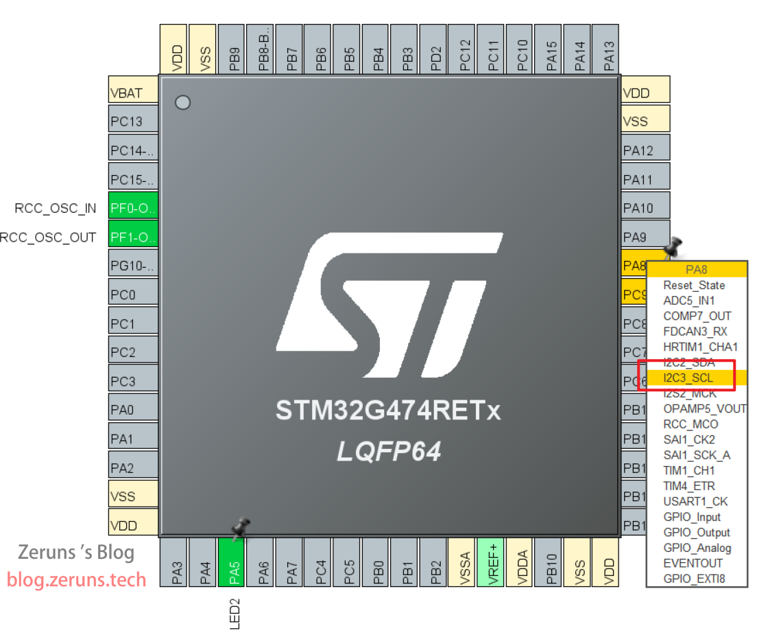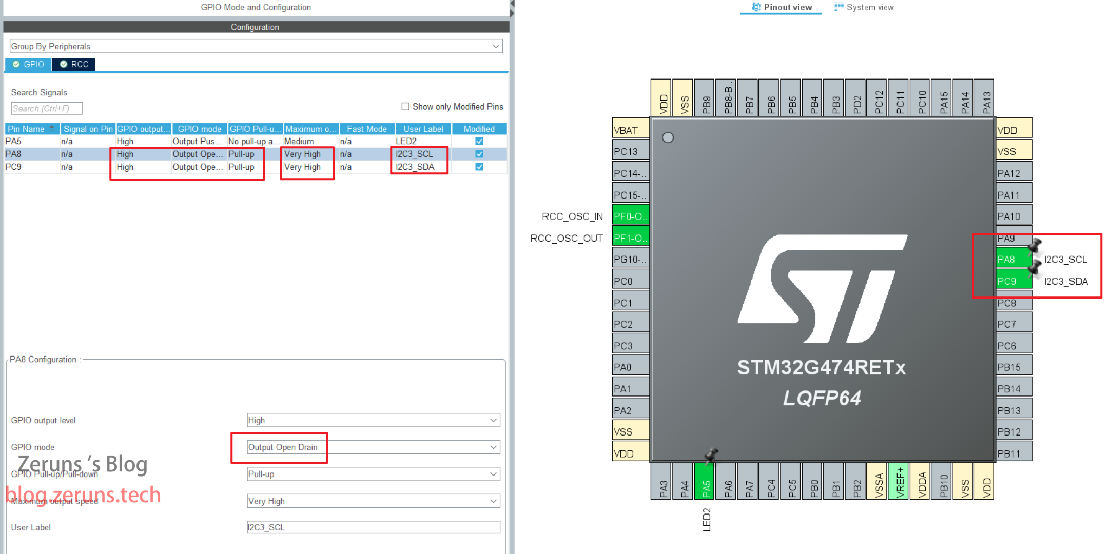 Mặc định dùng I2C phần cứng (I2C3): SCL = PA8, SDA = PC9.