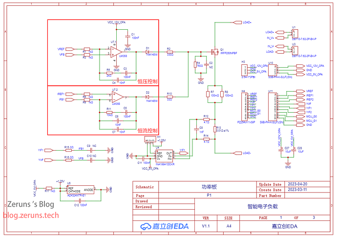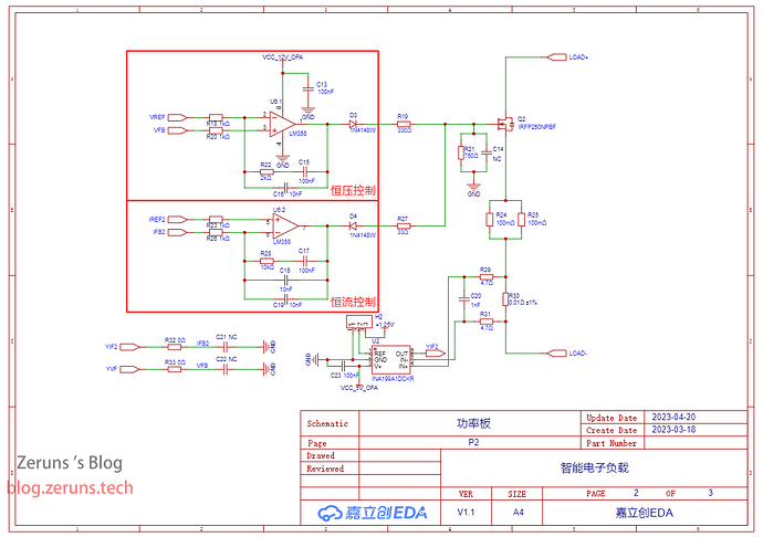 控制方式为通过单片机输出PWM波到低通滤波电路滤出一个较为稳定的直流电压(通过PWM+低通滤波实现DAC的功能)作为参考电压给到运放与电流/电压采样放大后的电压做比较,运放输出控制MOS管,从而实现恒压/恒流。