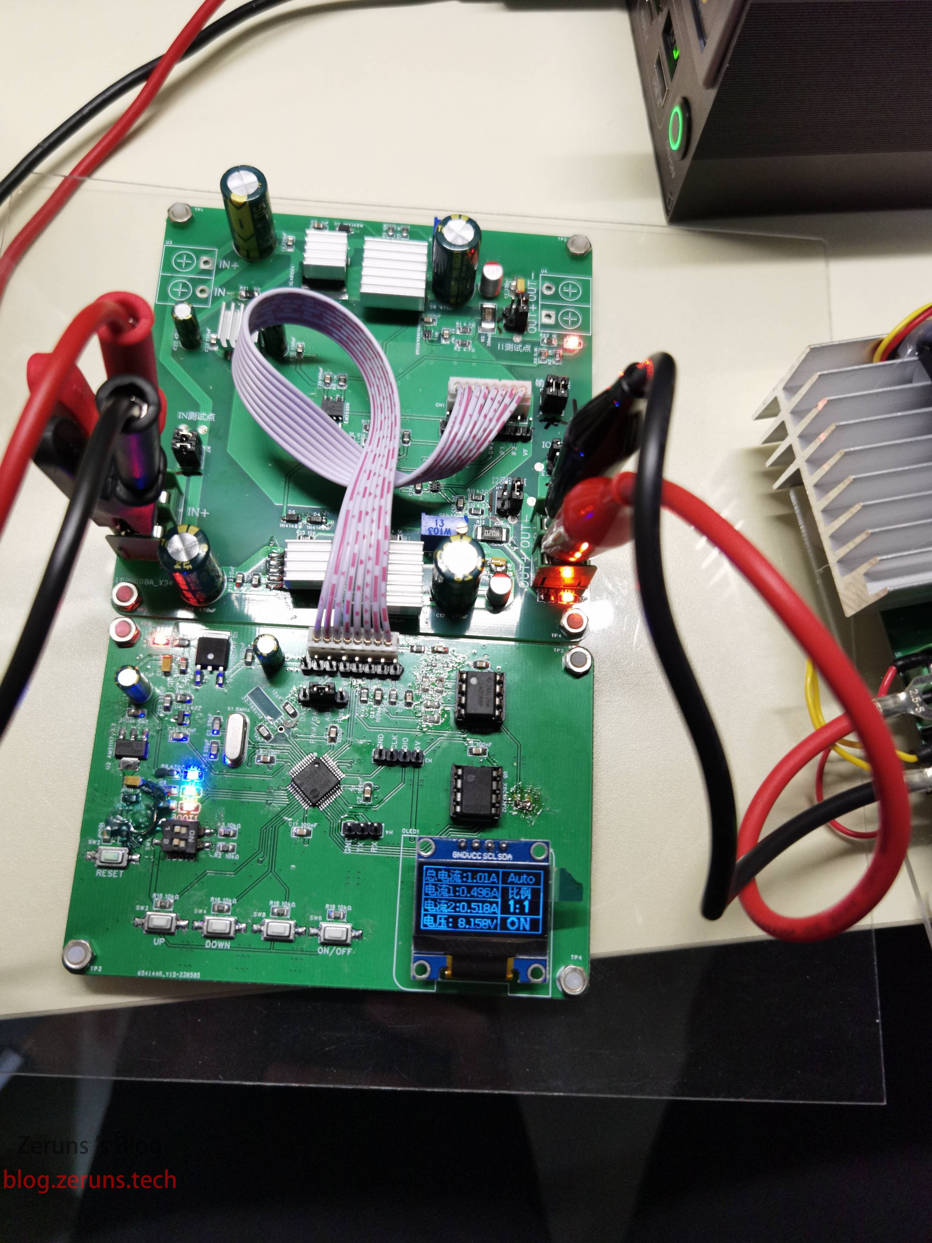 This entry uses the master–slave current-sharing method and consists of a constant-current source (slave), constant-voltage source (master), MCU control board, auxiliary power supply, etc. XL4015 is employed in both modules for buck step-down; Hezhou AIR32F103CCT6 MCU is the control core, and INA199 current-sense amplifier provides 50× gain for current sampling. The two sensed signals are summed in a non-inverting adder; the adder output is divided by fixed resistors and a digital potentiometer, then fed through a voltage follower and LM358 comparator back to the FB pin of the XL4015 in the slave module (constant-current source) to control its current and realise current allocation.
