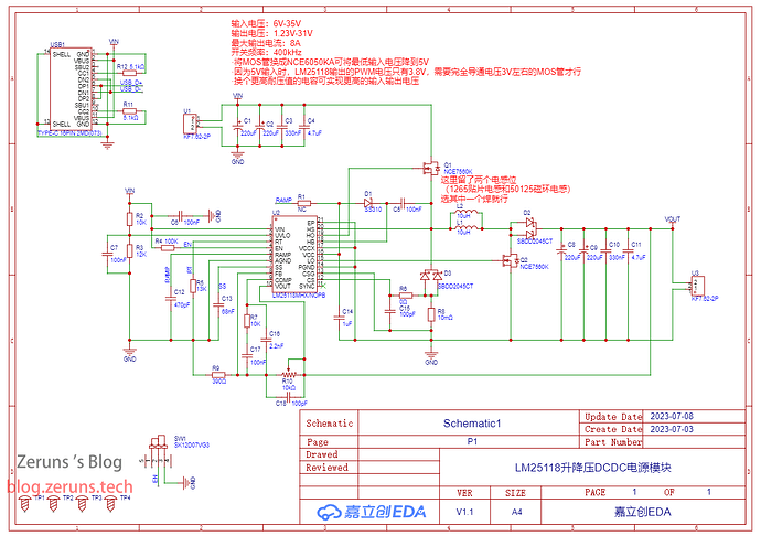 - SY8205同步降压可调DCDC电源模块(原理图和PCB):https://blog.zeruns.com/archives/717.html