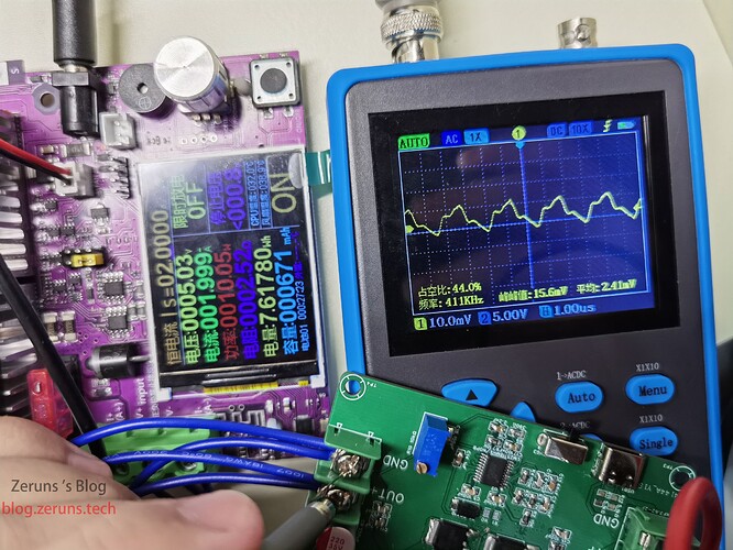 12V输入,5V 2A 输出时,纹波峰峰值15mV左右。