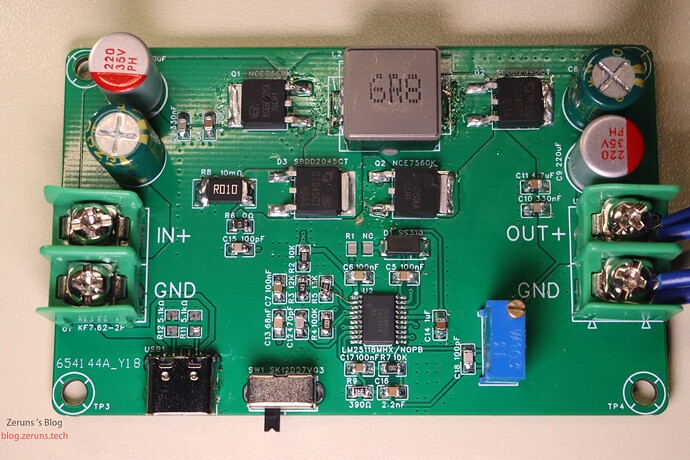 LM25118自动升降压非同步DCDC电源模块,输入电压4.5-35V,输出电压1.23-31V可调,最大输出电流8A,效率最高92%,开关频率400kHz。