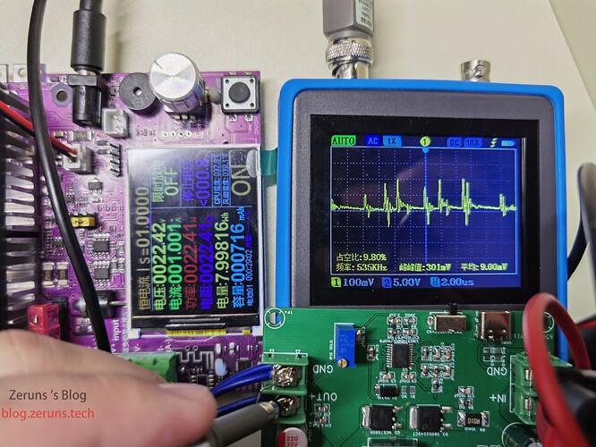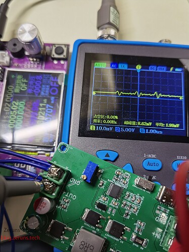 12V输入,5V输出空载时,纹波峰峰值8毫伏左右。