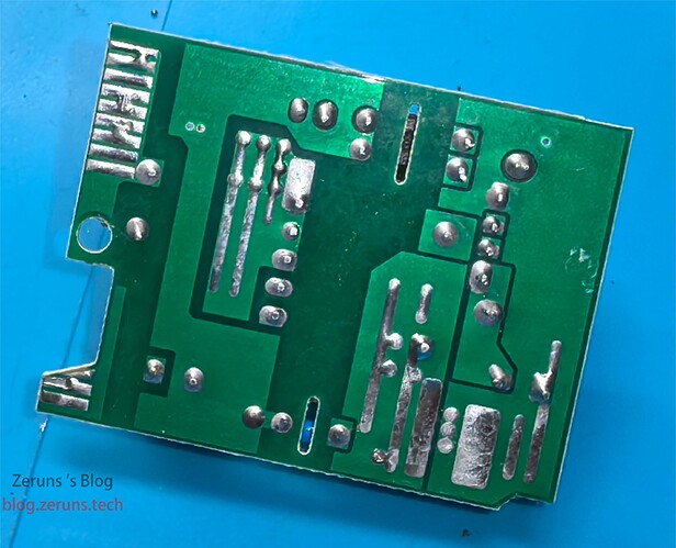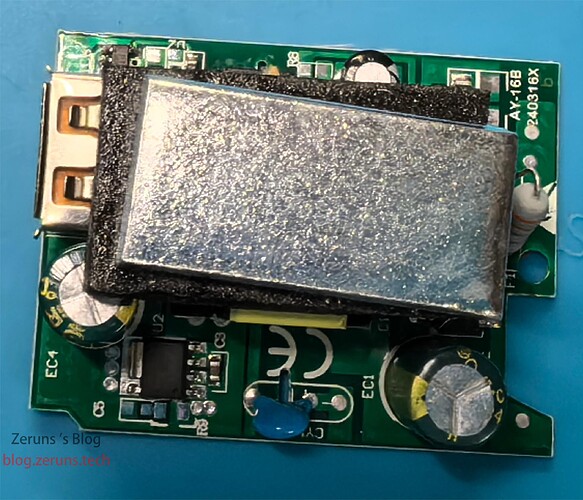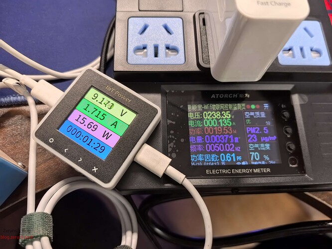 实测最高输出电压12V,最大输出功率15.6瓦,在满载时输出电压从12V被拉低到9V,充电器的转换效率在80%左右。