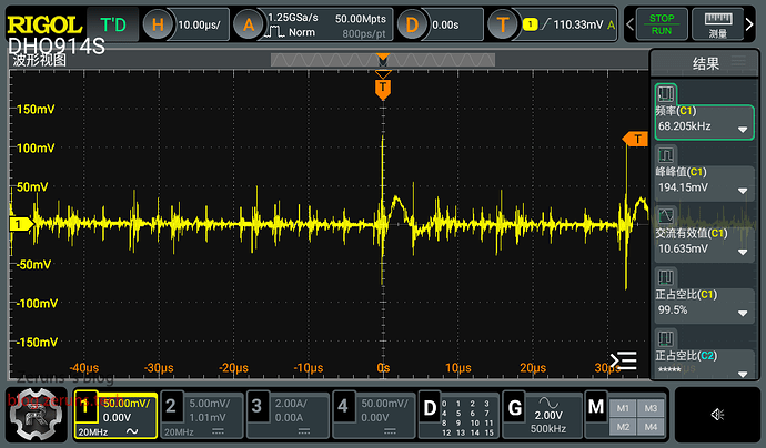 5V输出空载时的纹波如下图所示,纹波峰峰值一百多毫伏左右。