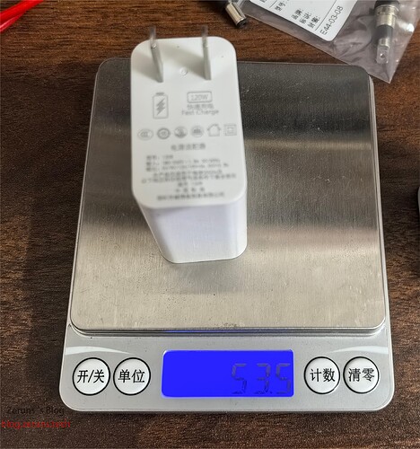 充电器重量53.5克。