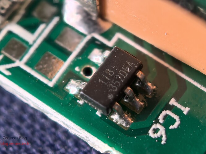 USB接口旁的6脚小芯片,应该是快充协议芯片,型号为118/352DEA,也是完全查不到资料。