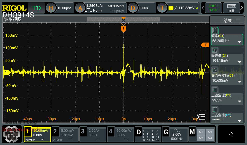 12V1A出力時のリップル:約460mV(ピーク・ツー・ピーク)。