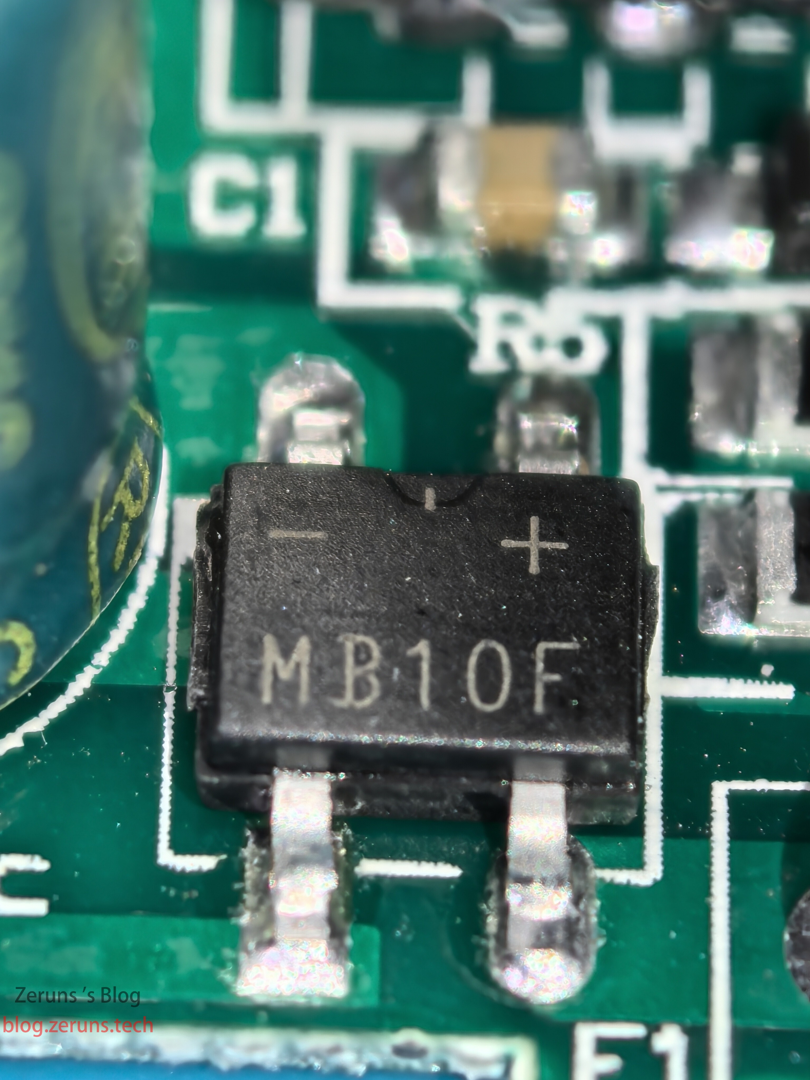 出力側フィルタコンデンサはUSBポートに隠れて耐圧16Vのみ判明。LCRメータで測定すると644μF。