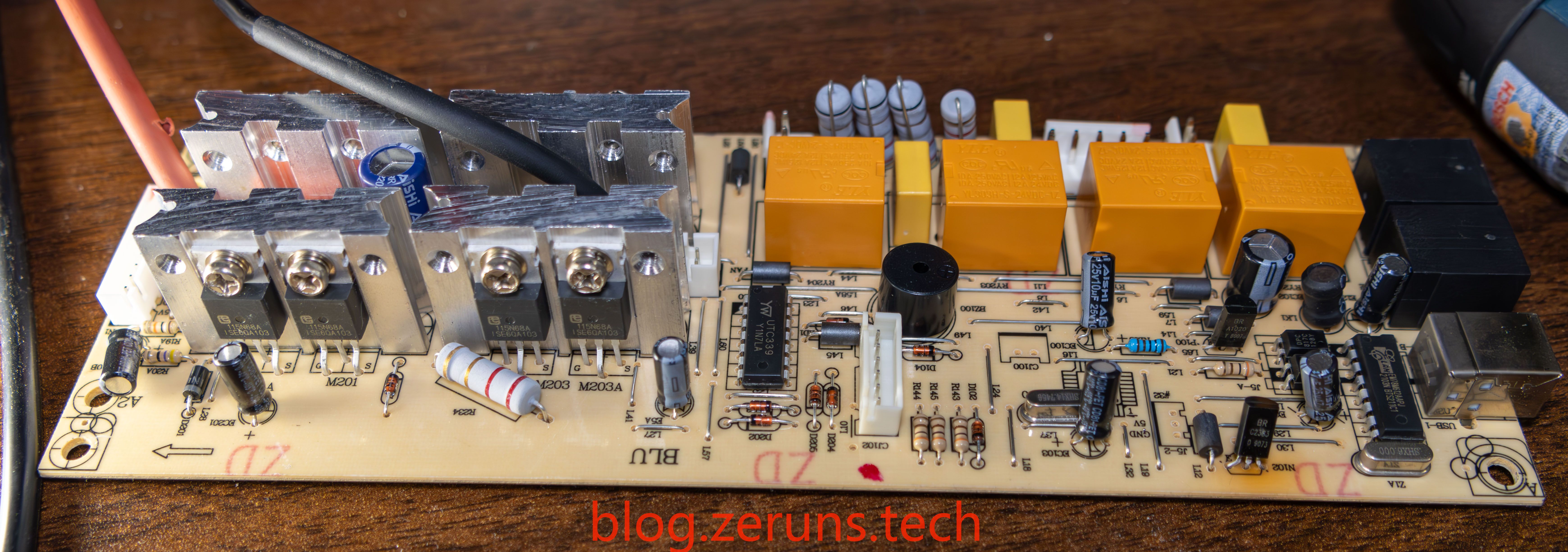 Инвертор этого ИБП, похоже, относится к сетевым инверторам, то есть МОП-транзисторы образуют мост H, а затем через сигнал PWM управляют этими МОП-транзисторами для создания низковольтного переменного тока 50Hz прямоугольной волны, который подается на сетевой трансформатор для повышения до 220V переменного тока.