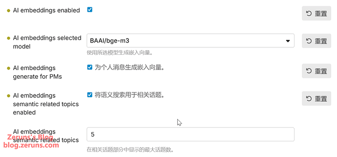 Embedding模型是什么:Embedding 模型负责将文字转化为计算机可理解的 “语义向量”,是 AI 搜索、相关话题推荐的核心(比如识别 “Discourse 邮件配置” 和 “如何设置 Discourse 邮件通知” 是同一语义)。