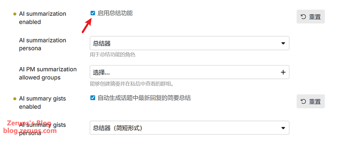 滑到下面的 AI summarization enabled 设置项可以启用总结功能,可以为话题(帖子)生成总结。