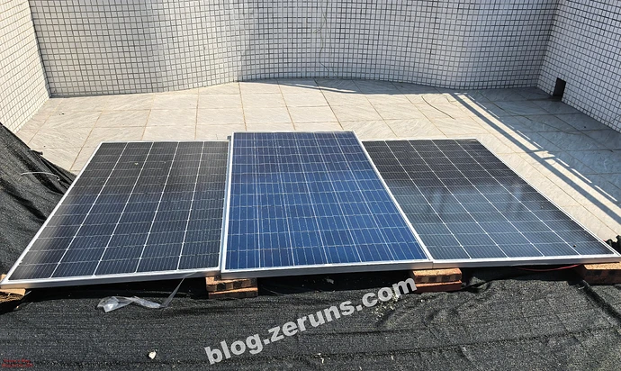 2025.6.9 补充更新,现在3块板都接了MPPT光伏优化器,并将连接方式从并联改成串联,现在晴天日发电量5度左右!