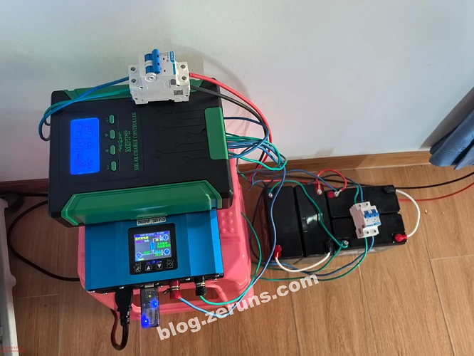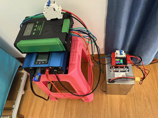 2025.11.3 补充更新,多加了一块350W的单晶硅光伏板串联进去,电池由铅酸电池换成磷酸铁锂(闲鱼上买的成品电池组,含保护板,700元1.2度电容量),原先的铅酸电池寿命以及大幅下降的,铅酸电池循环寿命太短了,还是得磷酸铁锂才行。