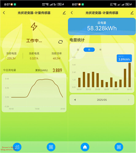 逆变器交流输出的电线上我自己额外接了个电流互感器,统计数据如下图: