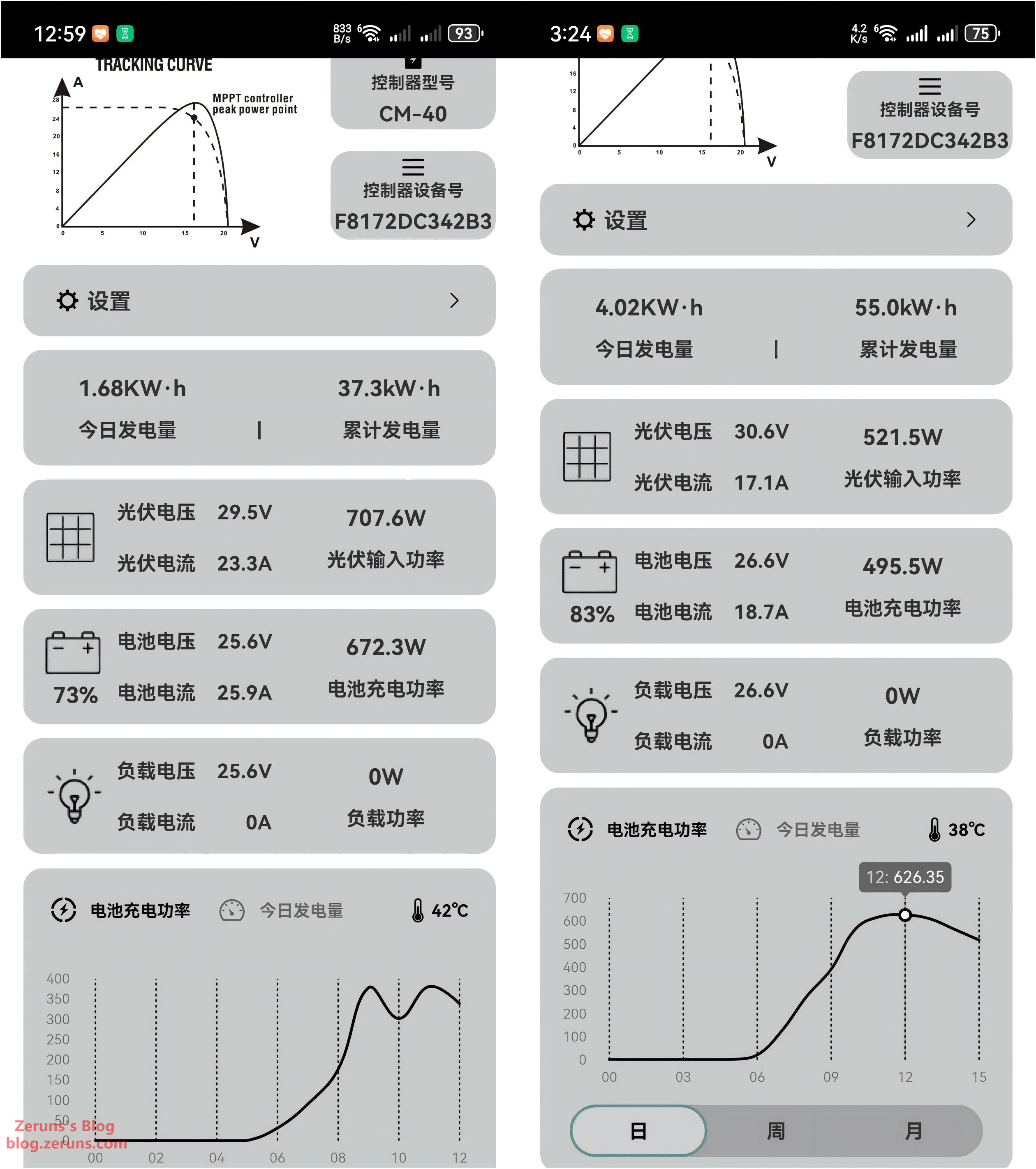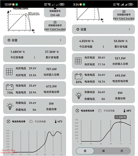 MPPT控制器的APP截图如下,3块板并联的最高功率707瓦左右: