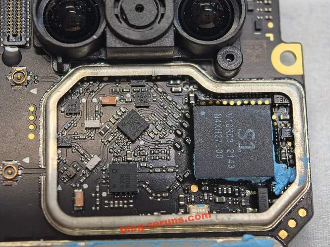 Inside the shield under the downward-facing camera module, there are three main chips: S1 V10R03, 4205, and 4550.