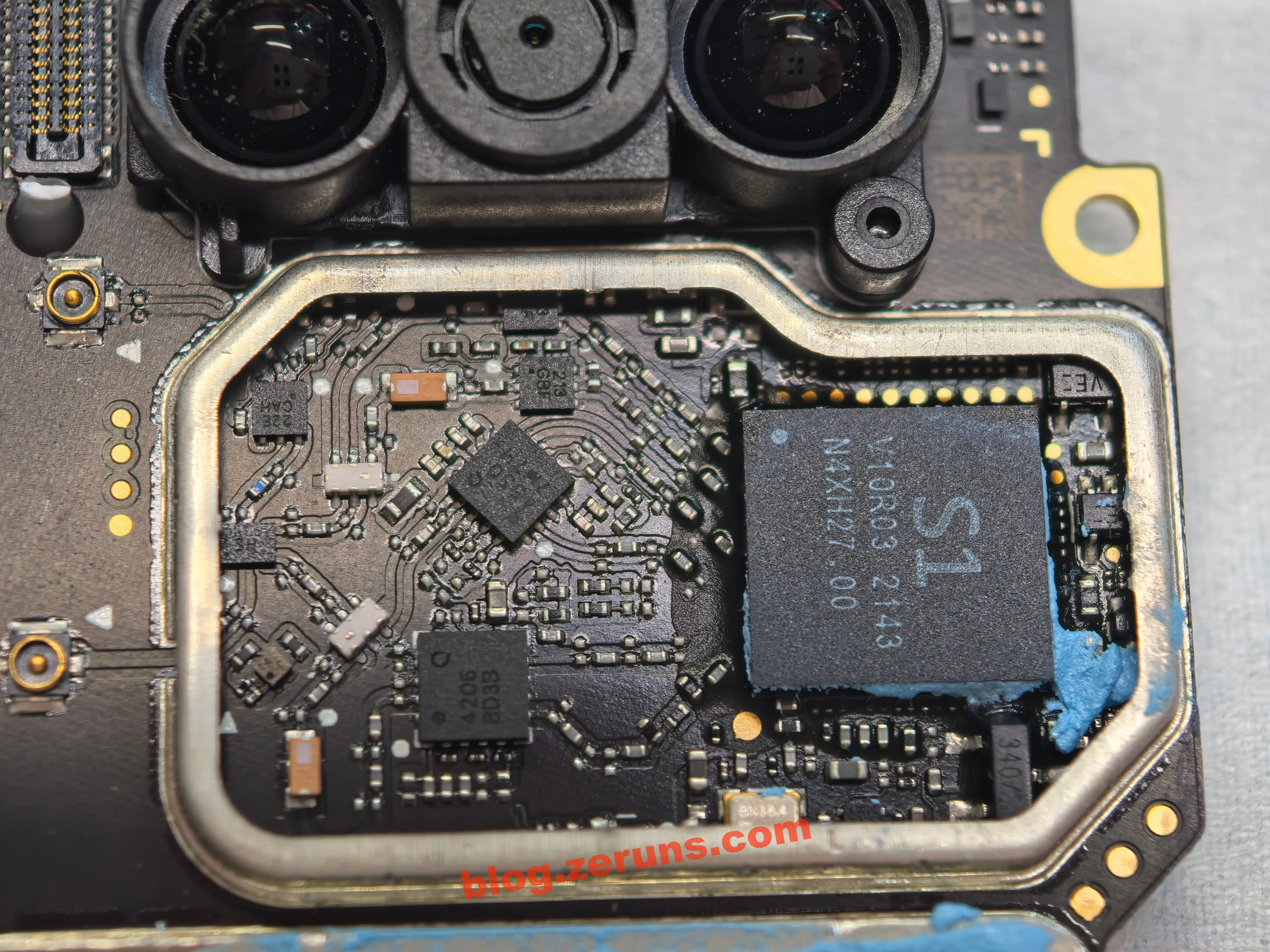 Внутри экрана под модулем камеры, направленной вниз, находятся три основных чипа: S1 V10R03, 4205 и 4550.