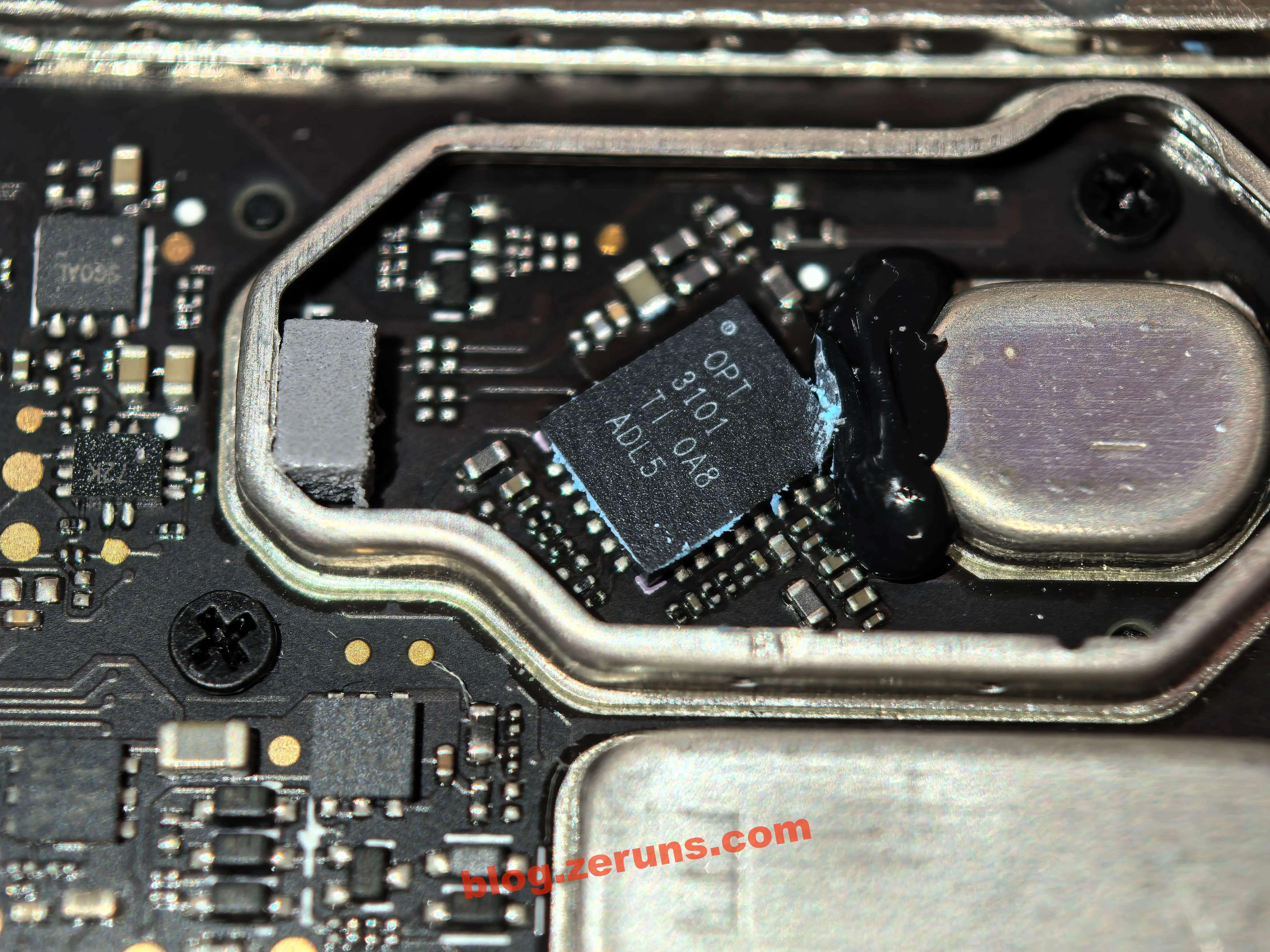 Снимите экран под слотом карты памяти TF (с другой стороны платы в этом месте находится модуль камеры, направленной вниз), и внутри находится чип OPT3101 от Texas Instruments (TI).