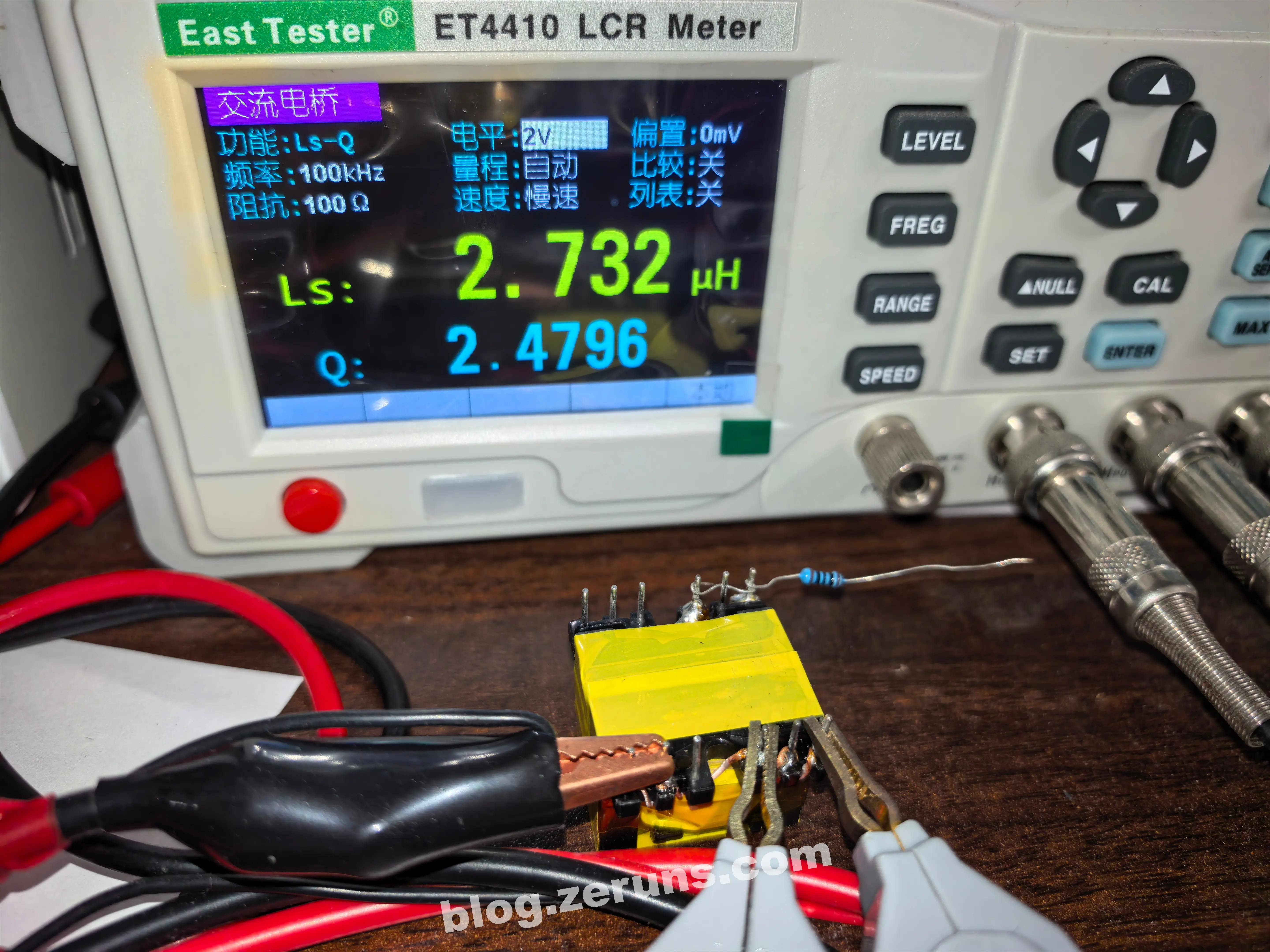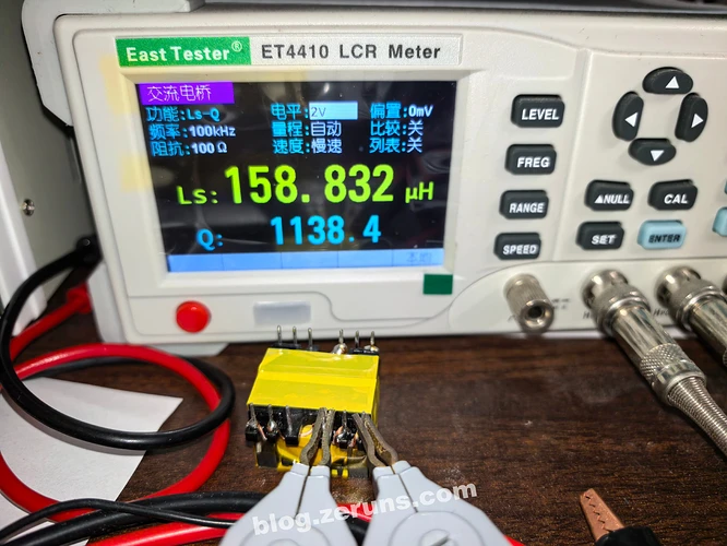After completion, measure again. The primary winding inductance of my transformer is 158.8μH.