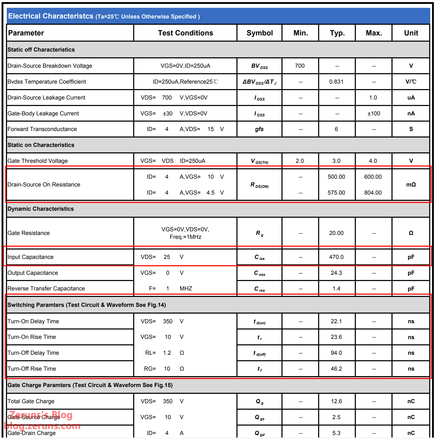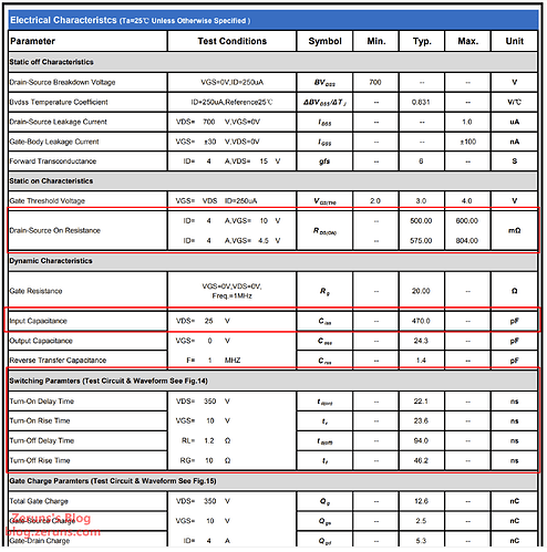 In addition to voltage and current ratings, other key parameters for MOSFET selection are the on-resistance R_{DS(ON)} and input capacitance C_{iss}. Lower values for both are preferable. A lower R_{DS(ON)} results in lower conduction loss when the MOSFET is on. The input capacitance C_{iss} directly impacts switching loss and driving loss; a smaller C_{iss} leads to faster switching response, lower switching loss, and less charge/discharge current required from the driver circuit, thus reducing driving loss.