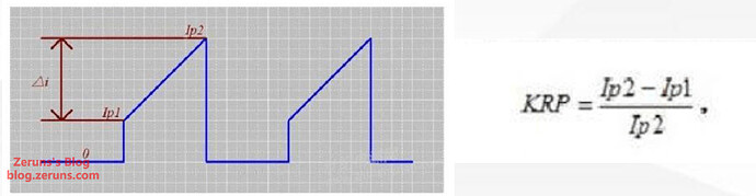 - Assuming a ripple factor K_{RP} (ratio of ripple current I_R to peak current I_P) of 0.8 for CCM (Continuous Conduction Mode), the primary peak current I_P is calculated as:
