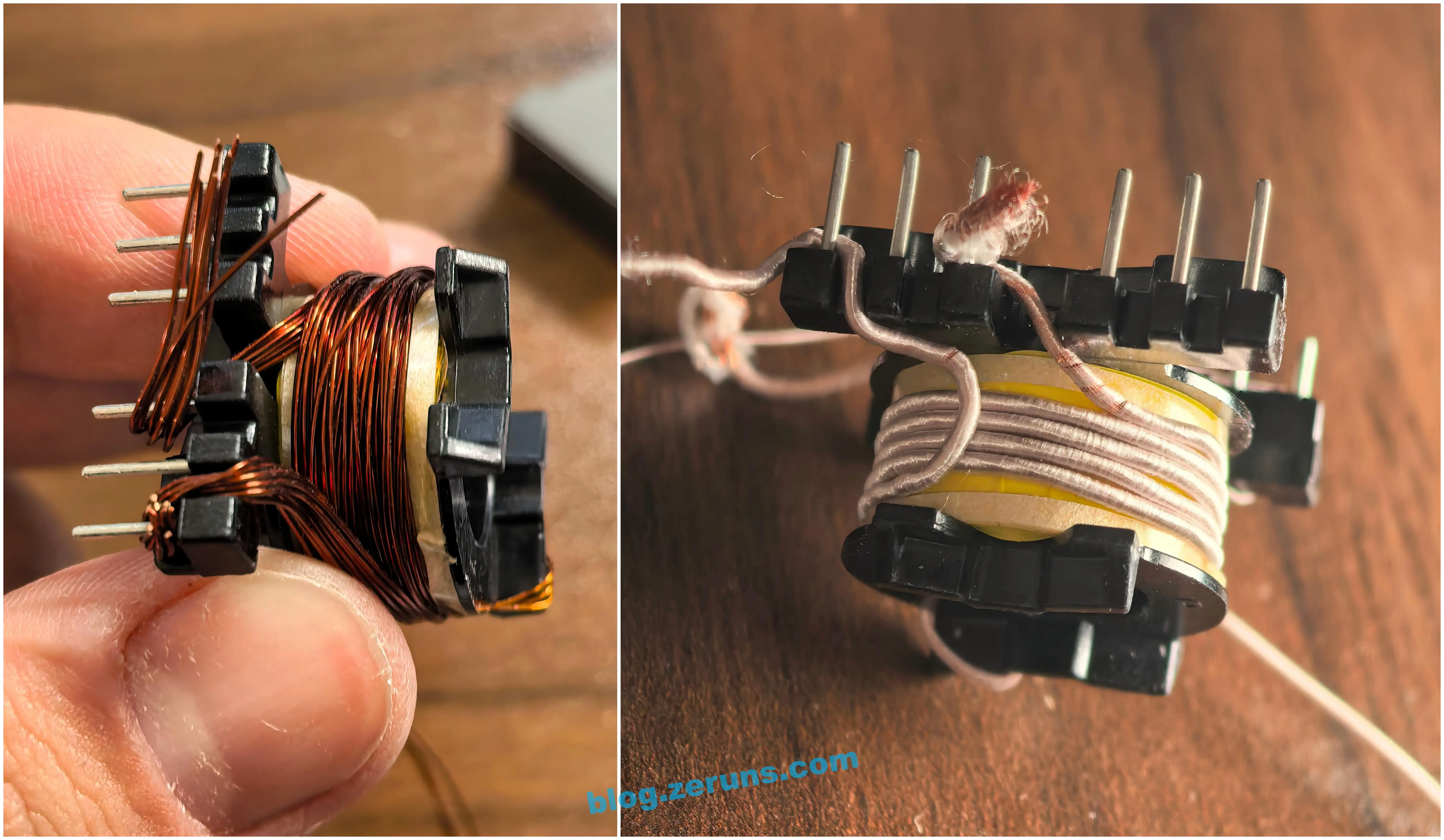 This was also my first time winding a transformer, so the work isn’t perfect. This is for reference only.