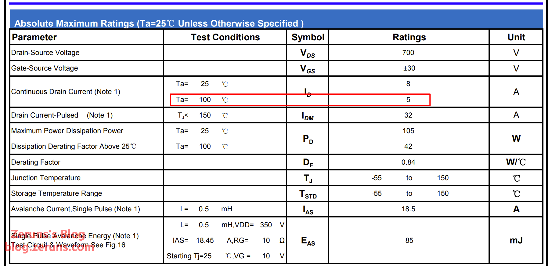 - Therefore, the selected MOSFET must have a voltage rating that satisfies: V_{mos} \cdot K_{vmos} = 615.637\,\text{V}