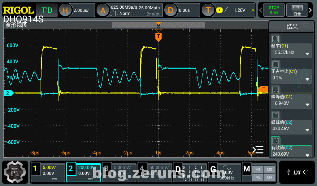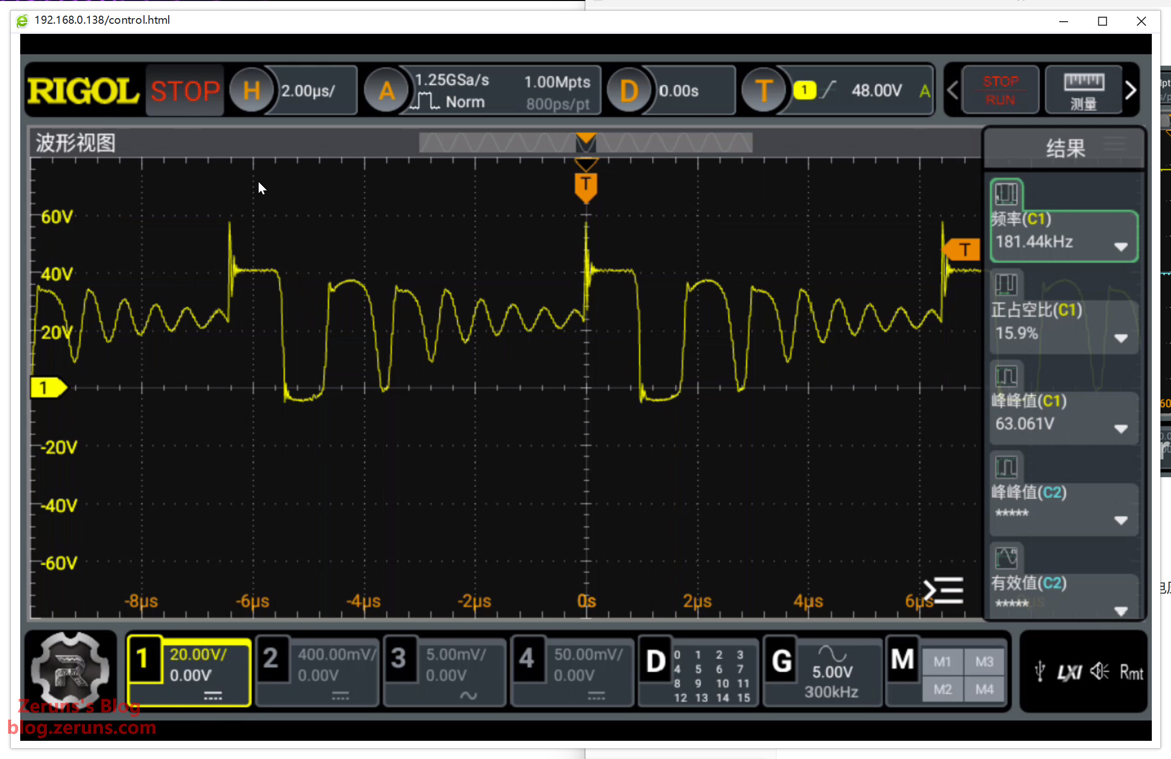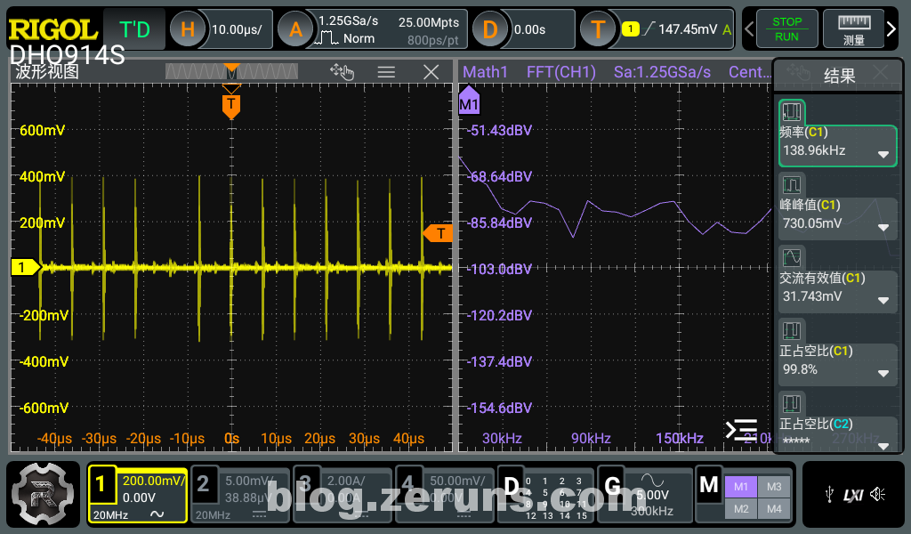 Máy hiện sóng được sử dụng là Rigol DHO914S: https://blog.zeruns.com/archives/764.html