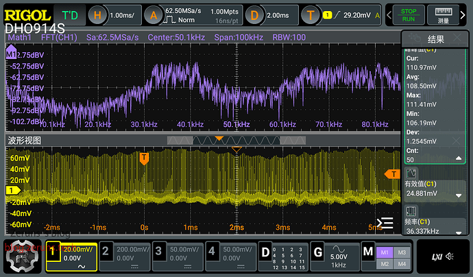 作为对比还测了一个毕亚兹的65W氮化镓充电器的纹波: