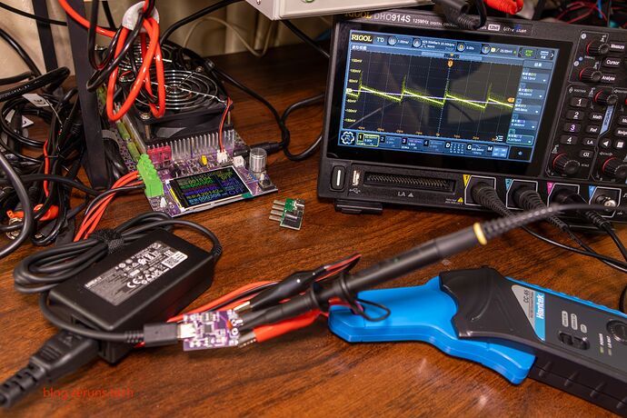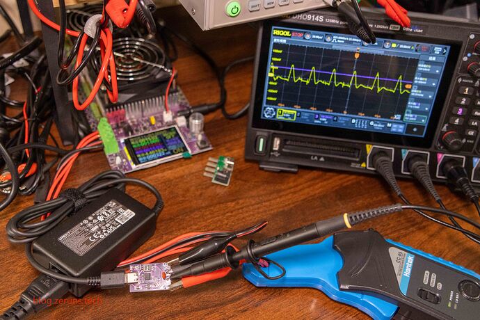 用PD诱骗器让充电器输出15V,示波器探头夹的那个焊盘底下焊了一个100nF的MLCC电容。