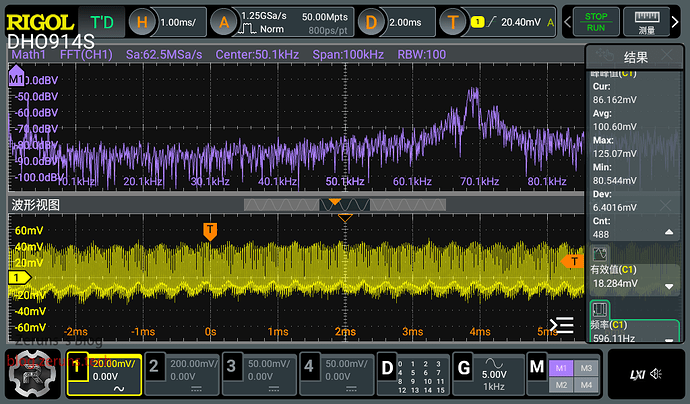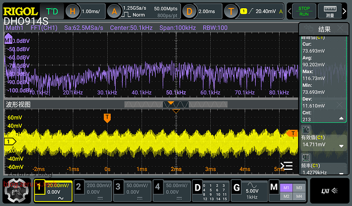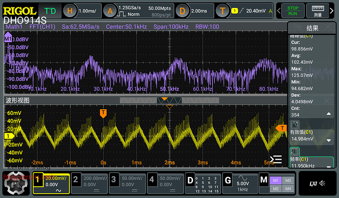 测试了一下示波器自带的LITEON电源的纹波表现,用PD诱骗器让电源输出15V,示波器探头夹的那个焊盘上接了一个100nF的瓷片电容。测试方法可能不够专业。