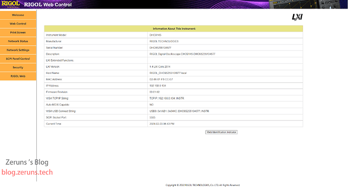 给示波器接上网线还可以通过网页后台控制示波器以及给示波器截图。