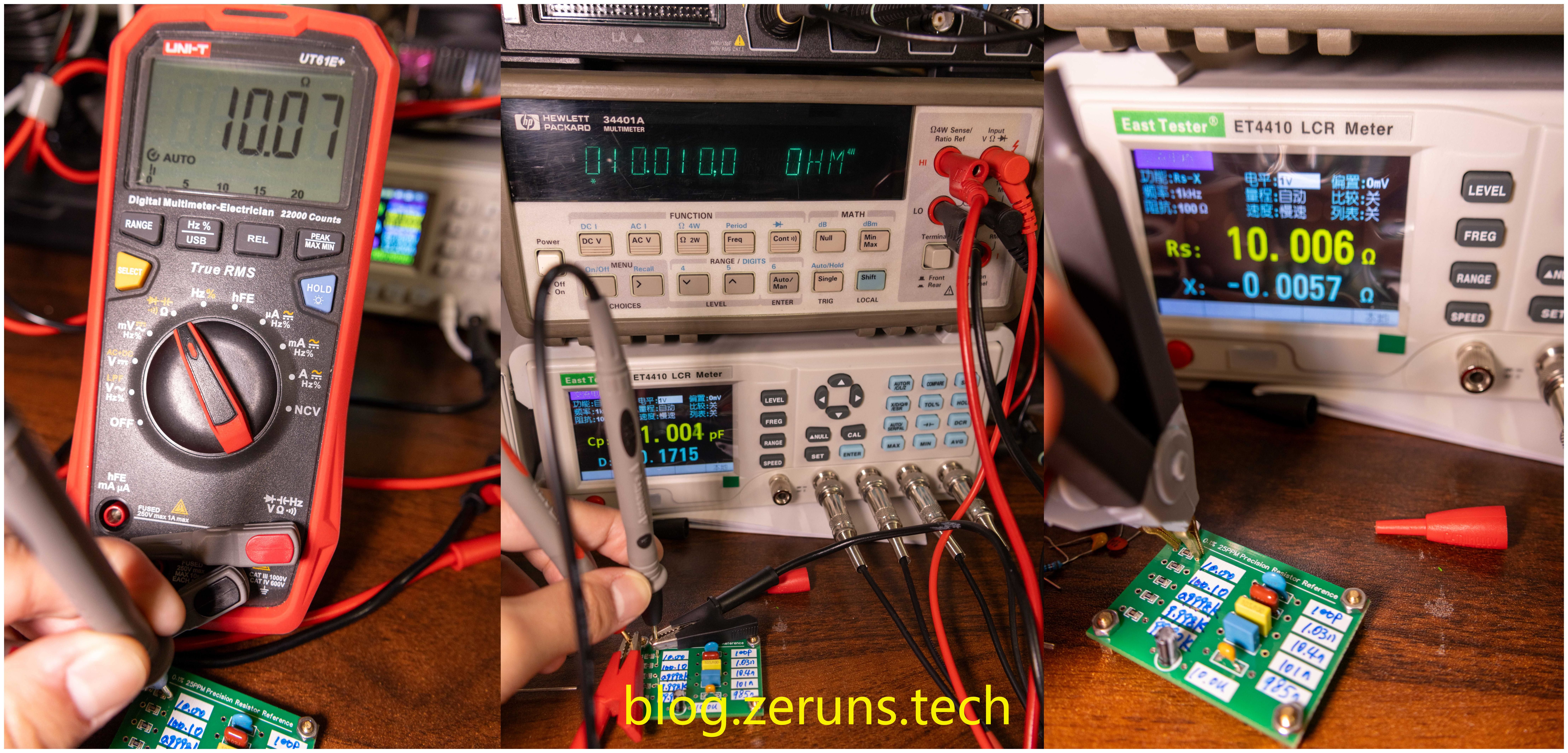 Đo một điện trở 0805 có giá trị 10Ω, độ chính xác 0.1%, đồng hồ đo LCR ET4410 đo được 10.006Ω, 34401A đo được 10.0100Ω, UT61E+ đo được 10.07Ω.