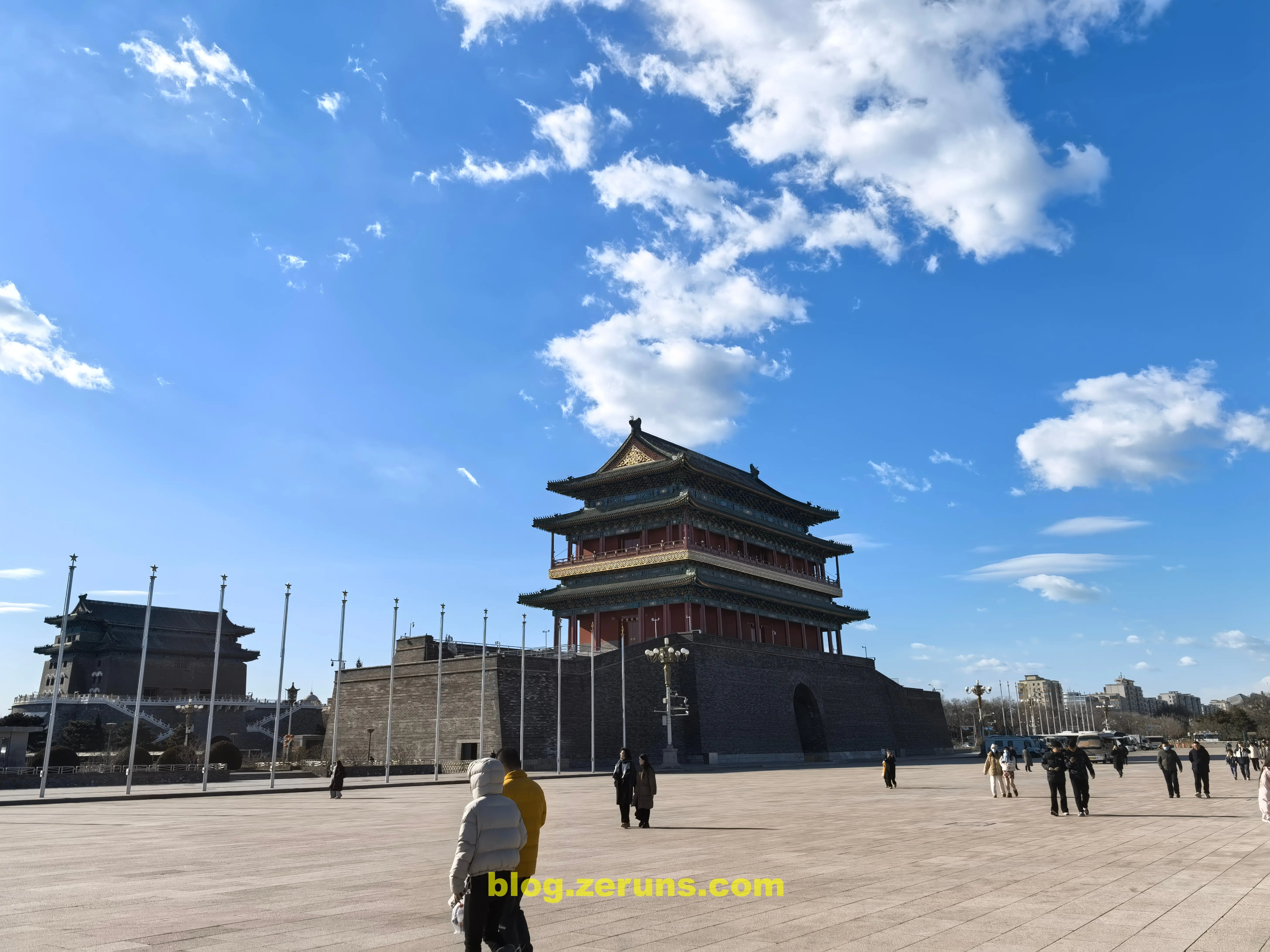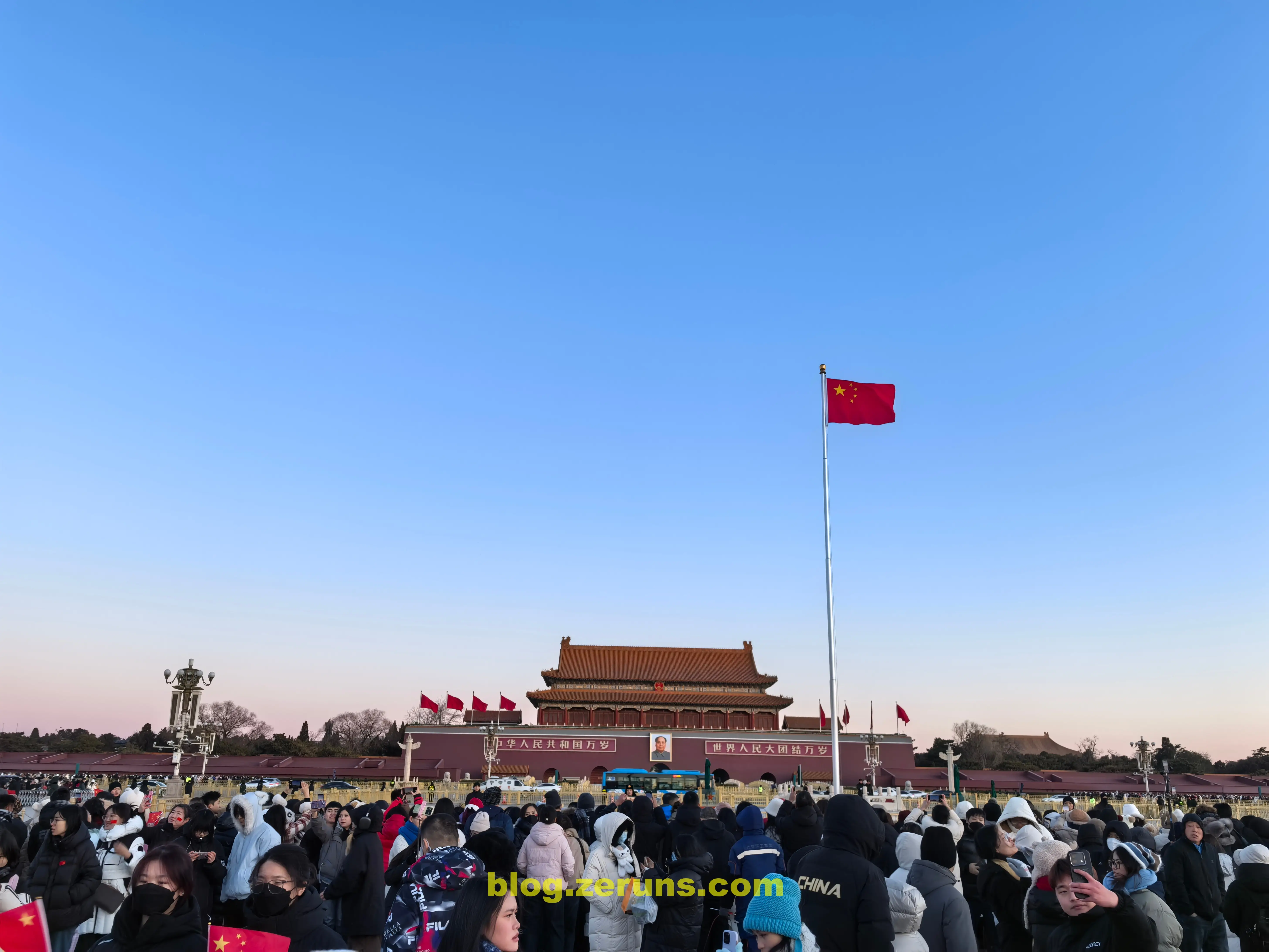 2025.1.7 Llegamos al aeropuerto de Daxing en Beijing a la 1 a.m. Tomamos un autobús del aeropuerto al hotel, dejamos el equipaje y nos dimos una ducha. A las 4 a.m. tomamos un taxi para ir a la Plaza de Tiananmen a hacer cola para ver el izado de la bandera. Hicimos cola una hora, entramos a la plaza sobre las 5:30 a.m. y conseguimos un lugar en primera fila. Luego estuvimos de pie hasta las 7:30 cuando comenzó el izado. Tras verlo, fuimos a hacer cola para entrar al Museo Nacional. El museo abre a las 9, así que otra vez estuvimos de pie más de una hora. (Nota: es necesario reservar con antelación para entrar a la Plaza de Tiananmen; todos los puntos turísticos dentro de la plaza también requieren reserva previa).