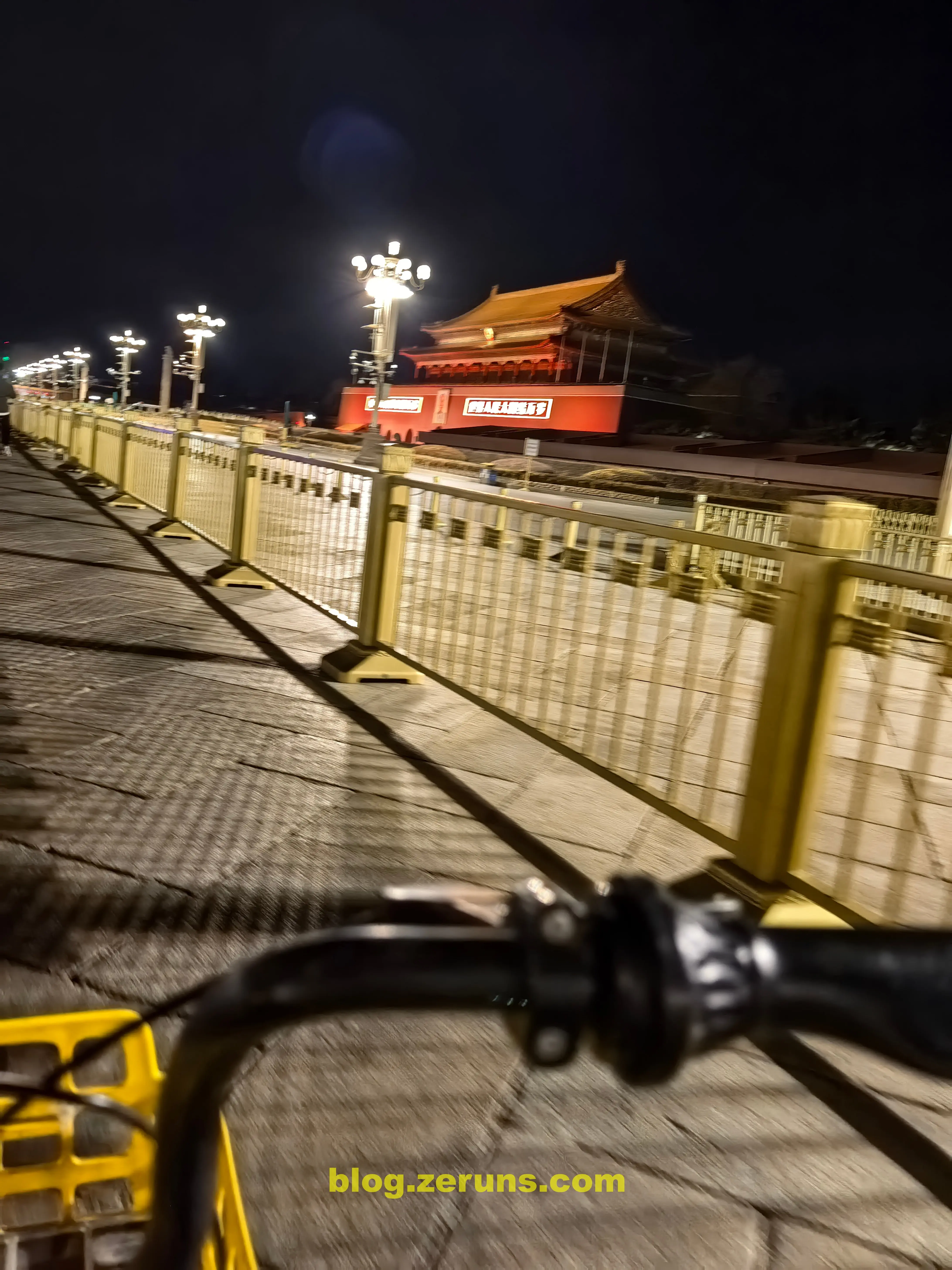 2025.1.7 Tras dormir, salimos a las 8 p.m. Al salir, cayó un poco de nieve (copos muy pequeños, apenas duró menos de media hora). Tomamos el metro hasta Wangfujing, comimos fideos con salsa de soja frita (muy grasos, no me gustaron, aunque su yogur estaba bastante bueno), luego buscamos bicicletas compartidas y anduvimos en bici por la noche en Tiananmen.