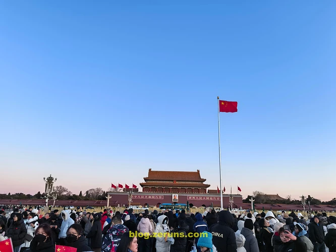 2025.1.7 凌晨1点到达北京大兴机场,坐机场大巴到酒店放下行李洗个澡,凌晨4点打车去天安门广场排队看升旗,排了一个小时五点多进到天安门广场,抢到前排位置,接着站到七点半开始升旗,看完升旗接着去排队进国家博物馆,国家博物馆9点才开门,又是站一个多小时。(注意:进天安门广场需提前预约,天安门广场内所有景点都需要提前预约)