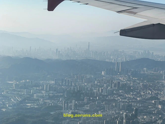 飞机上拍深圳,可以看到华润大厦(春笋大厦)