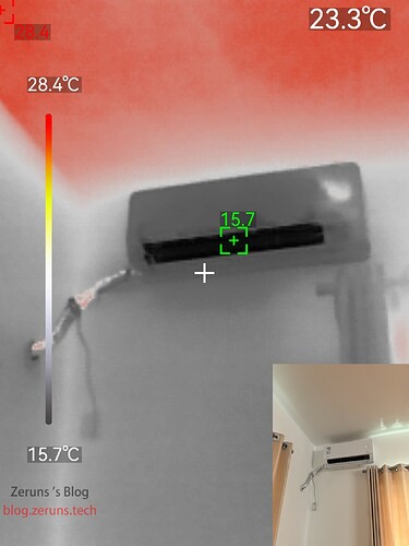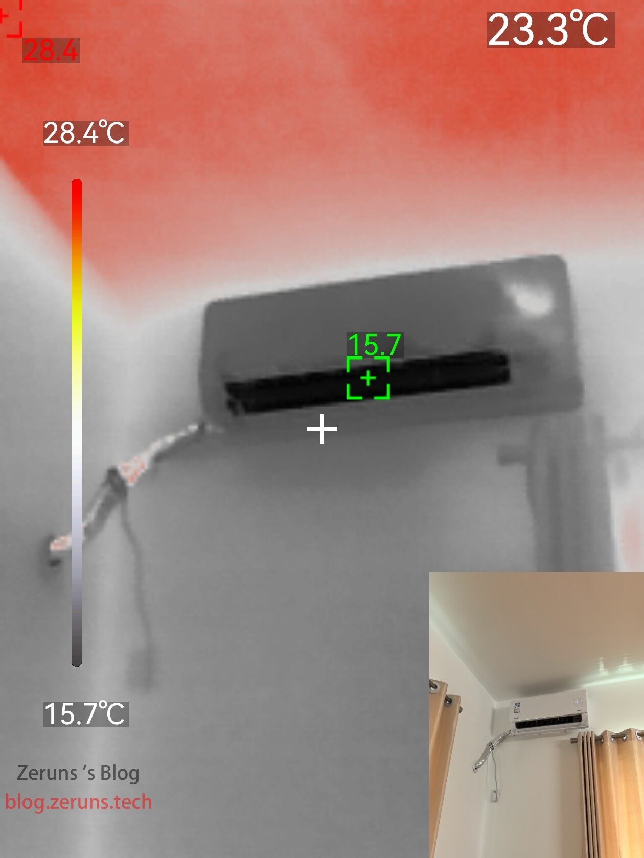 空调内机,由于我房间上面就是天台了,所以天花板温度偏高。