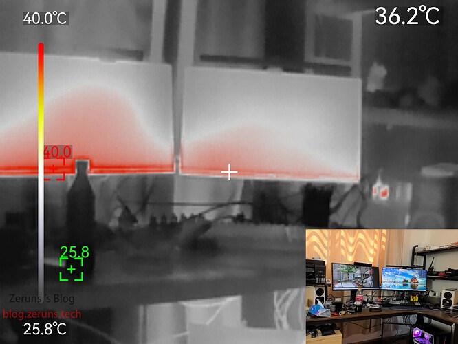 显示器,这个两个显示器的背光灯灯条应该是在底部,所以可以看到底部发热较大。