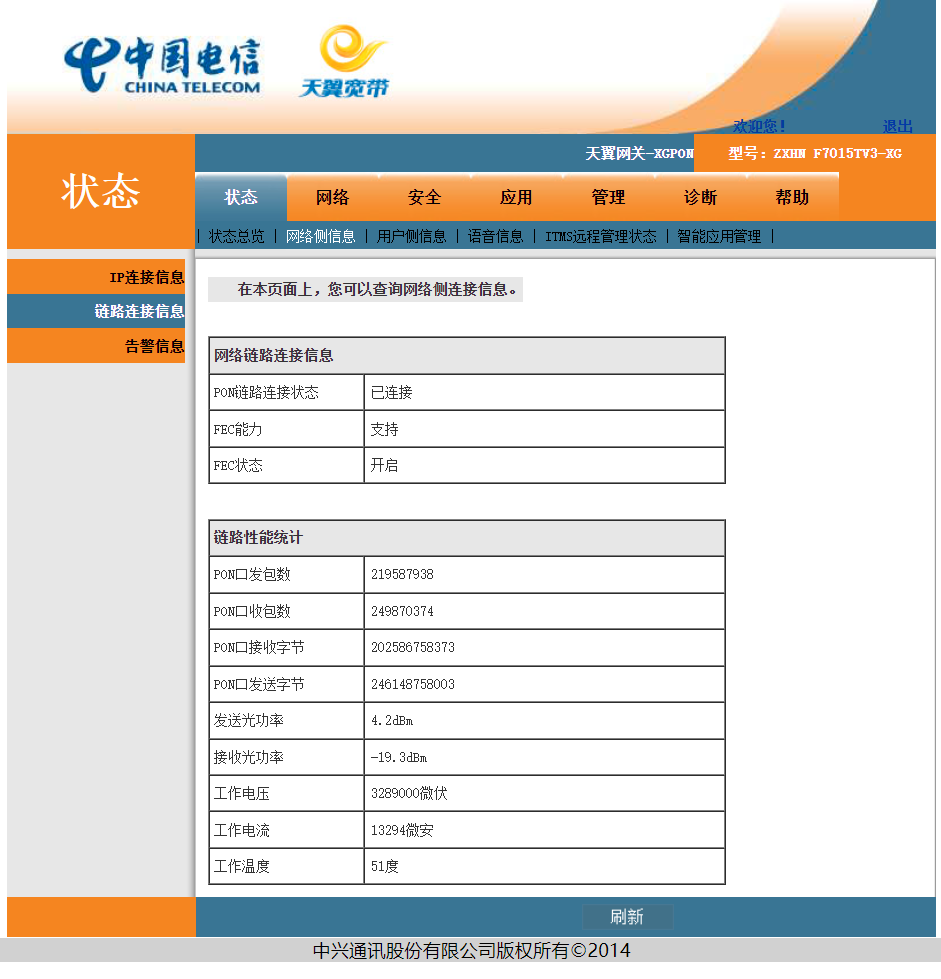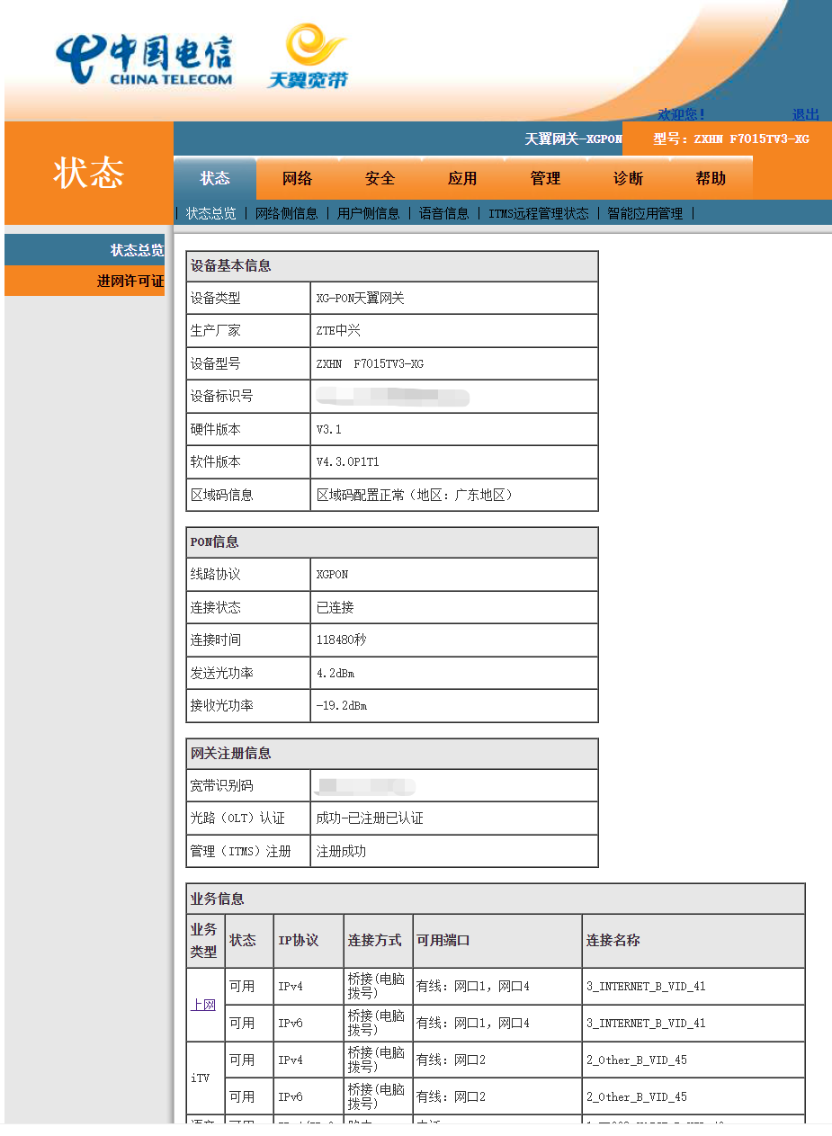 跟风换了一个近期比较热门的光猫F7015TV3,看中的是带2.5G口,体积小不带WiFi功耗低。支持XGPON和XEPON。
