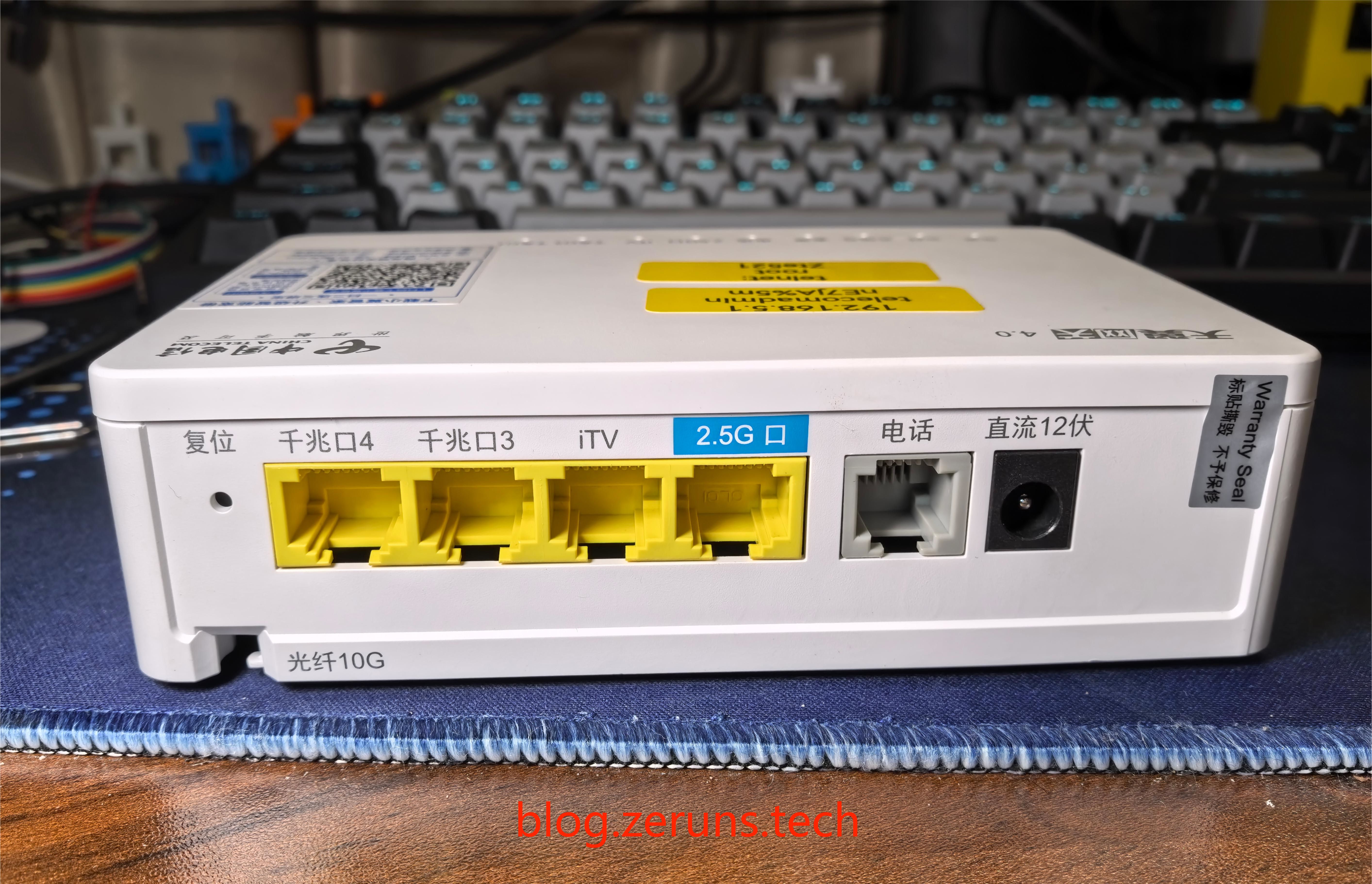 背面接口,有1个2.5G口,1个IPTV口,2个千兆口,还有一个电话线接口。
