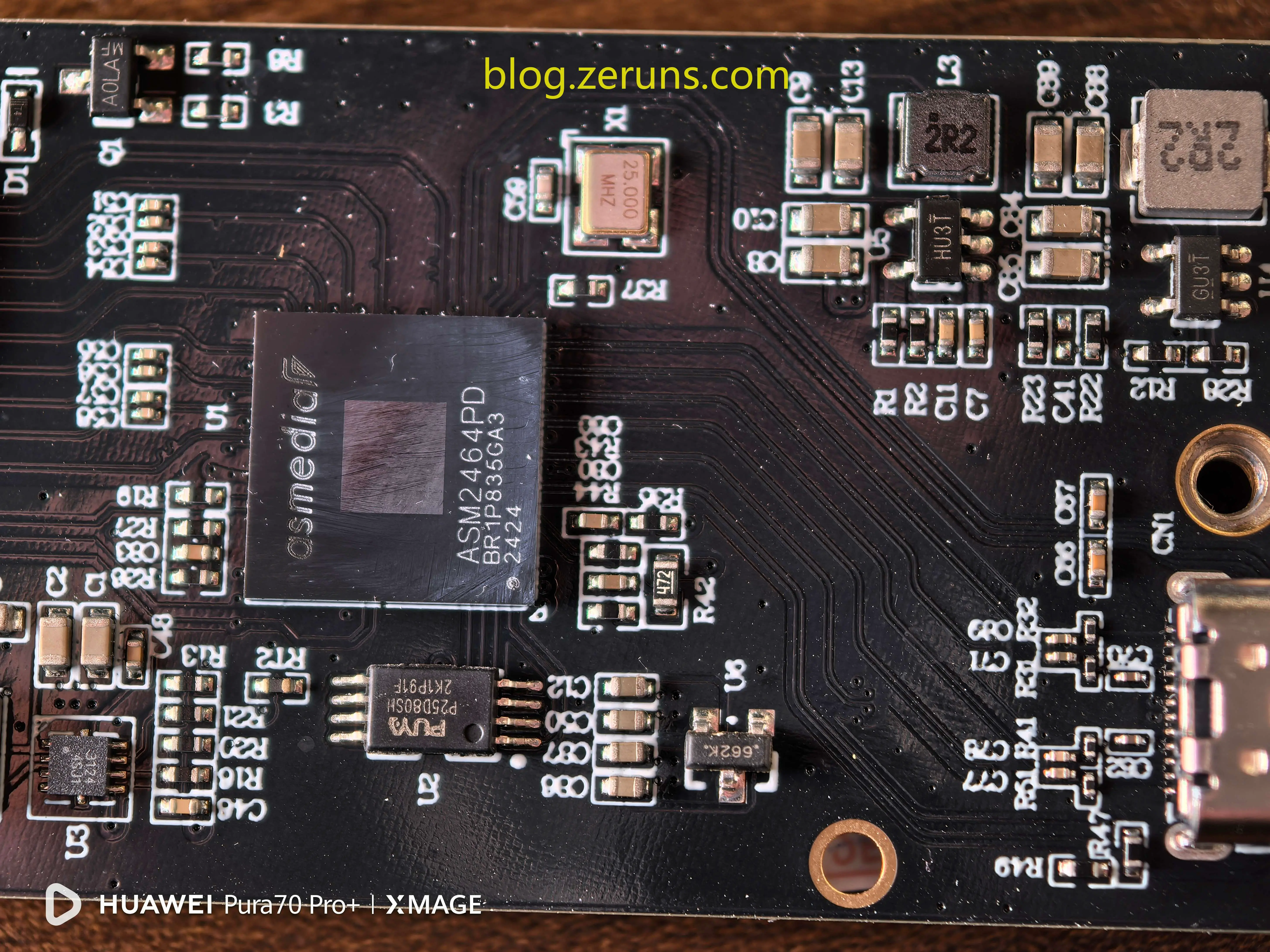 该硬盘盒主芯片型号为ASM2464PD,芯片官网地址:https://url.zeruns.com/ASM2464PD