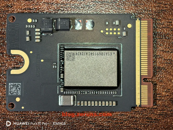固态硬盘小板正反面,闪存颗粒上的型号为K5A3RG8773CA12424