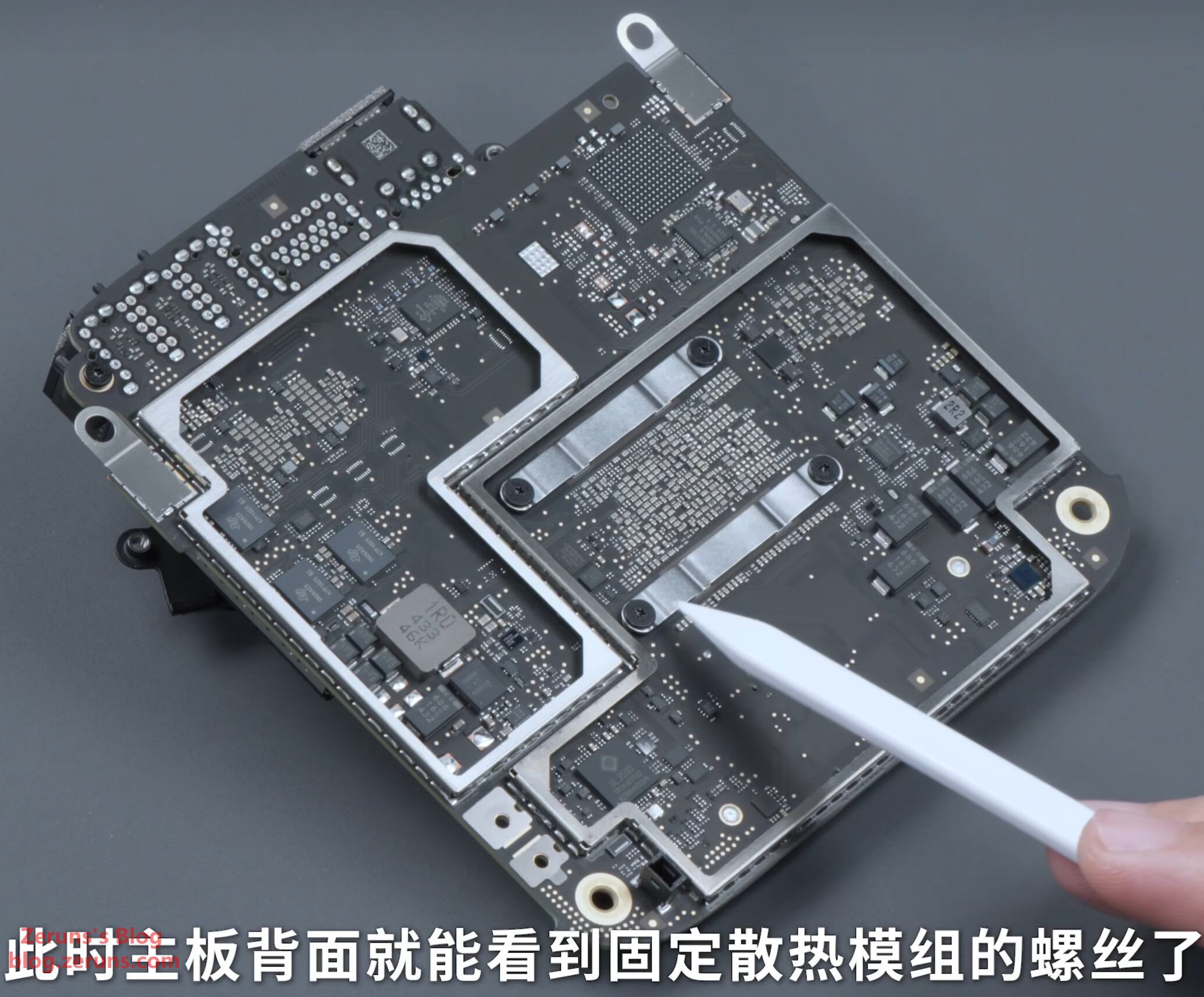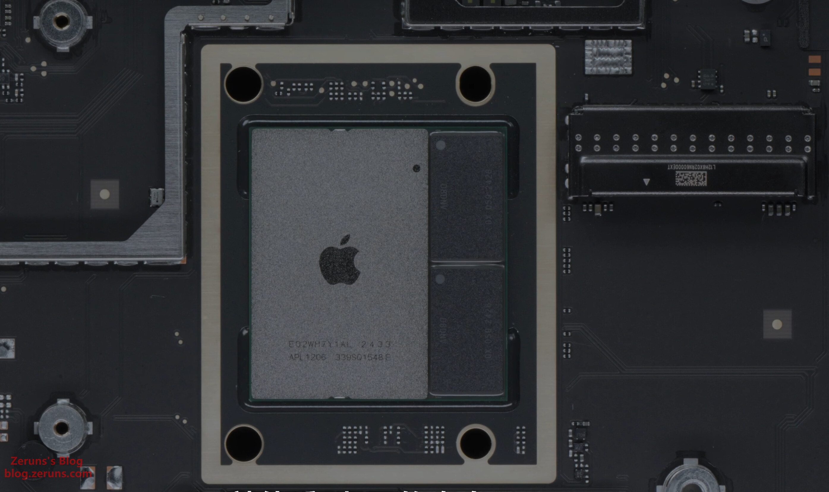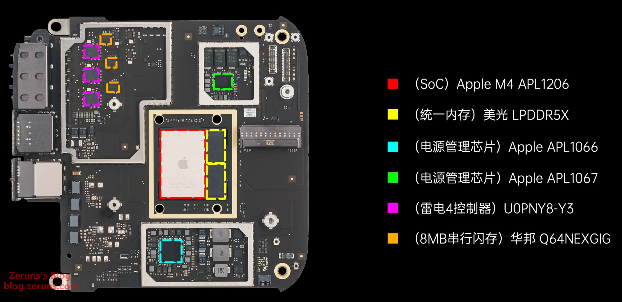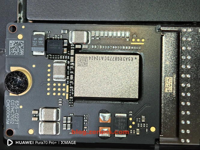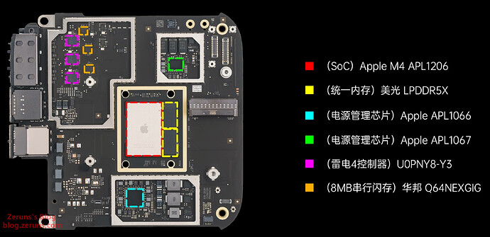M4芯片和内存颗粒,内存是美光的LPDDR5X,内存和核心封装在一个基板上