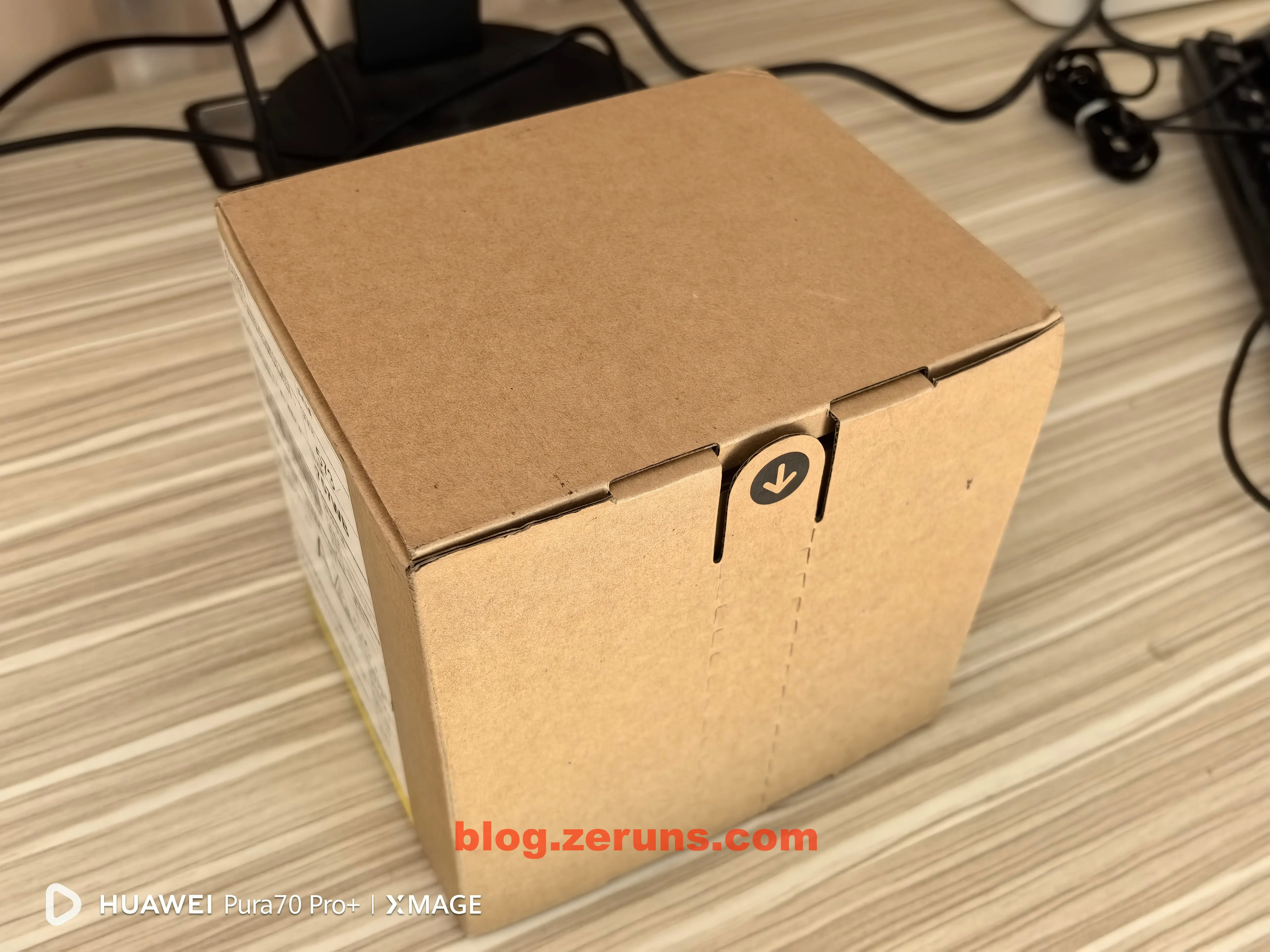 外面纸皮包装,快递送来就是这个包装,设计挺巧妙的,撕开带箭头的拉条就能打开盒子。