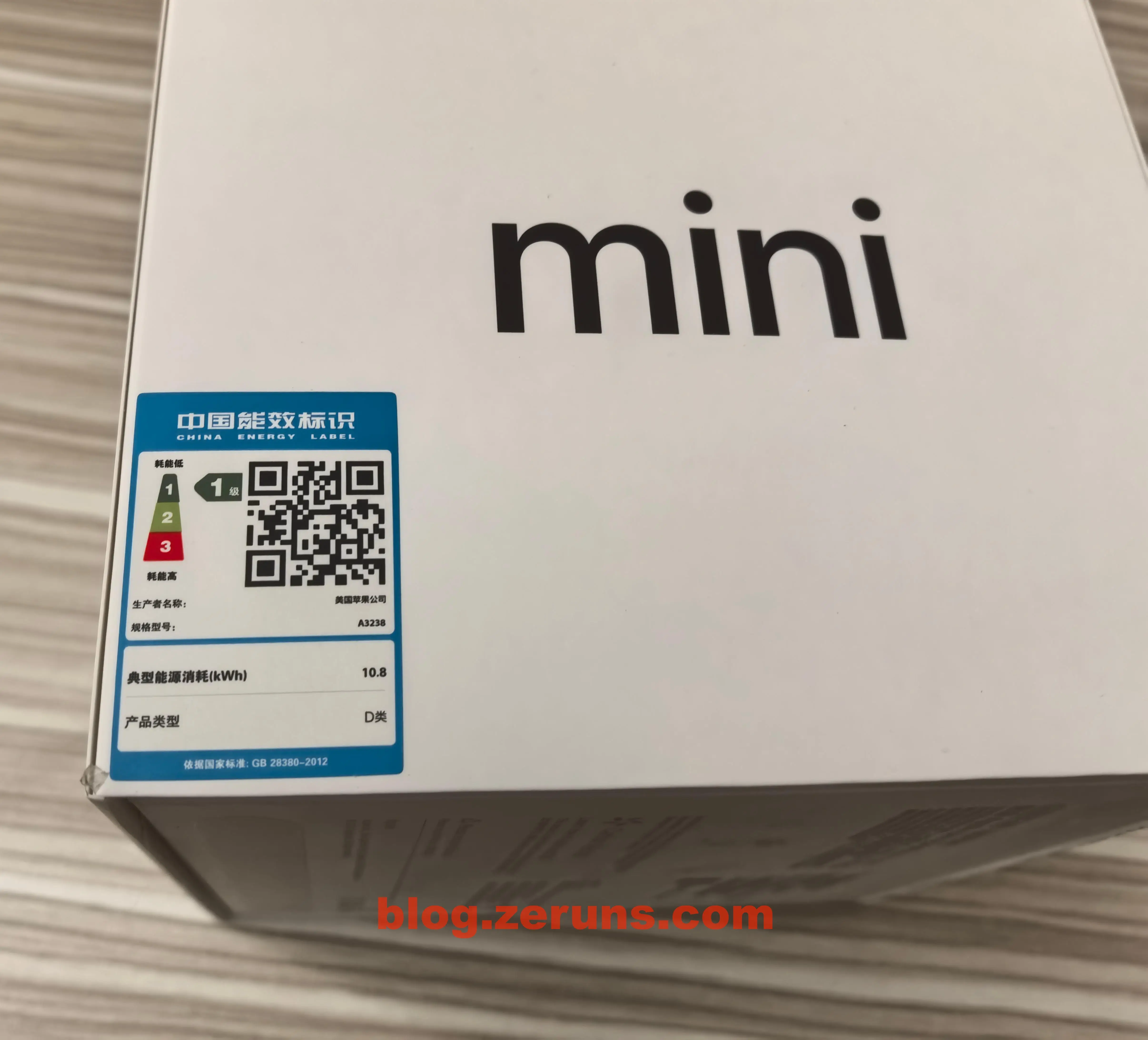 彩盒包装的侧面有能效标识,1级能耗,典型能源消耗10.8kWh,产品类型D类