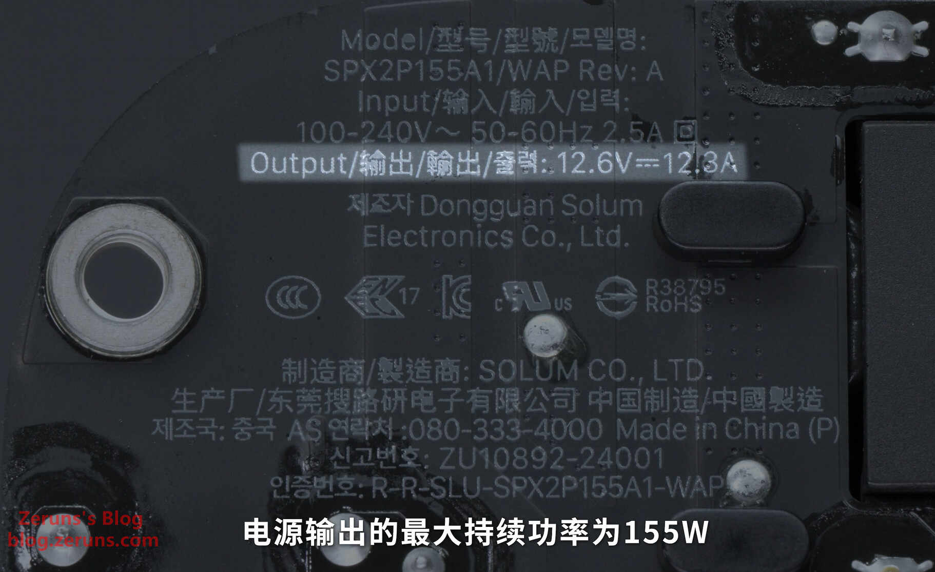 电源最大输出功率是155W,输出电压电流为 12.6V / 12.3A